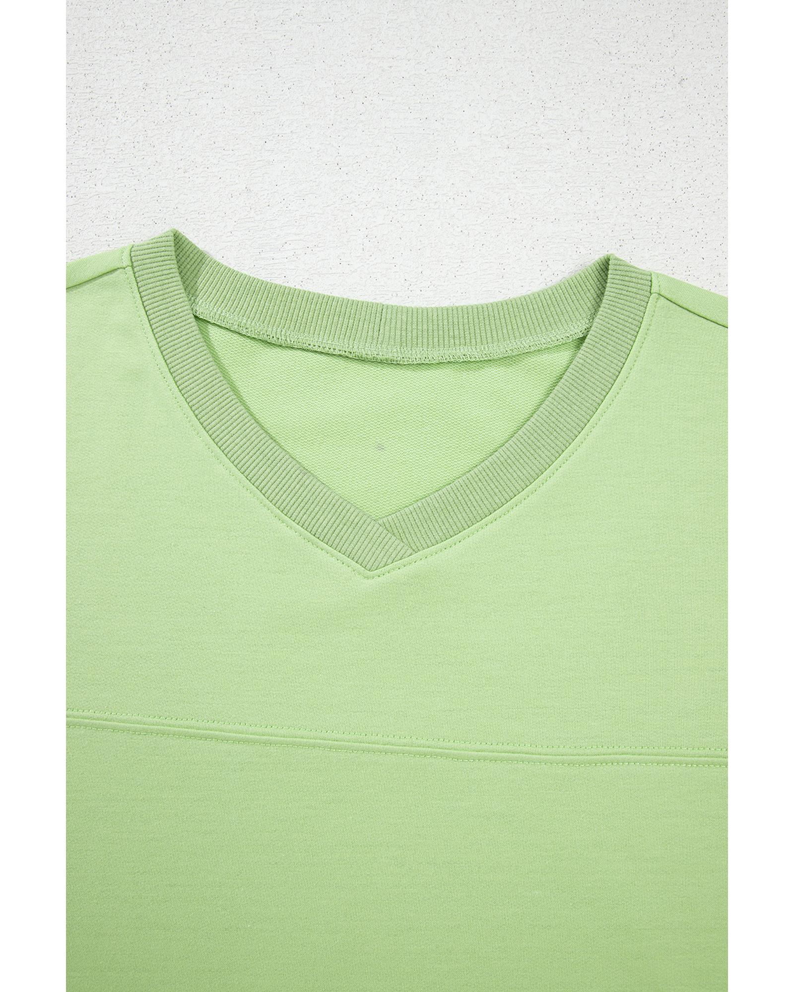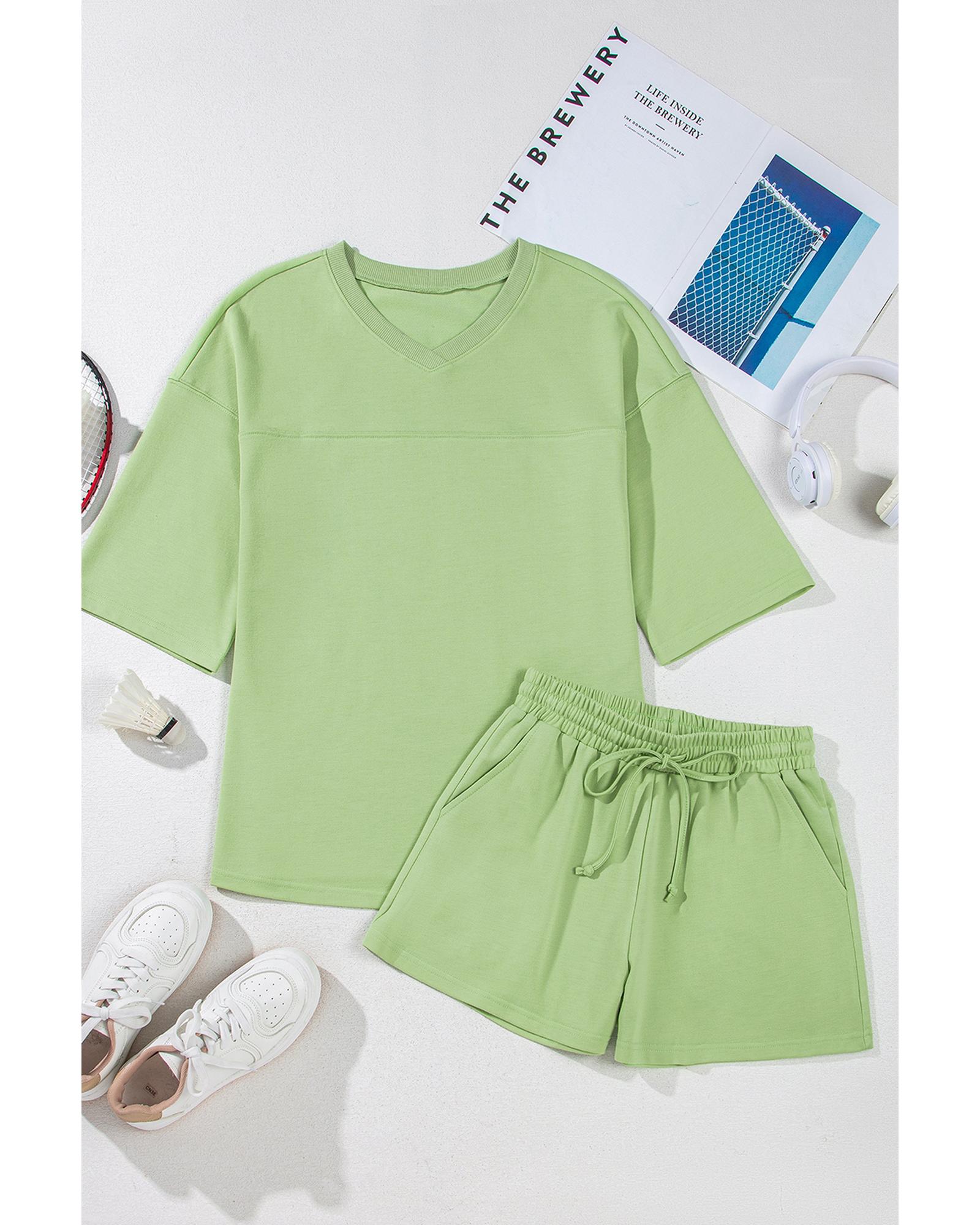 Meadow Mist Green Solid Loose V Neck Half Sleeve Tee and Shorts – L