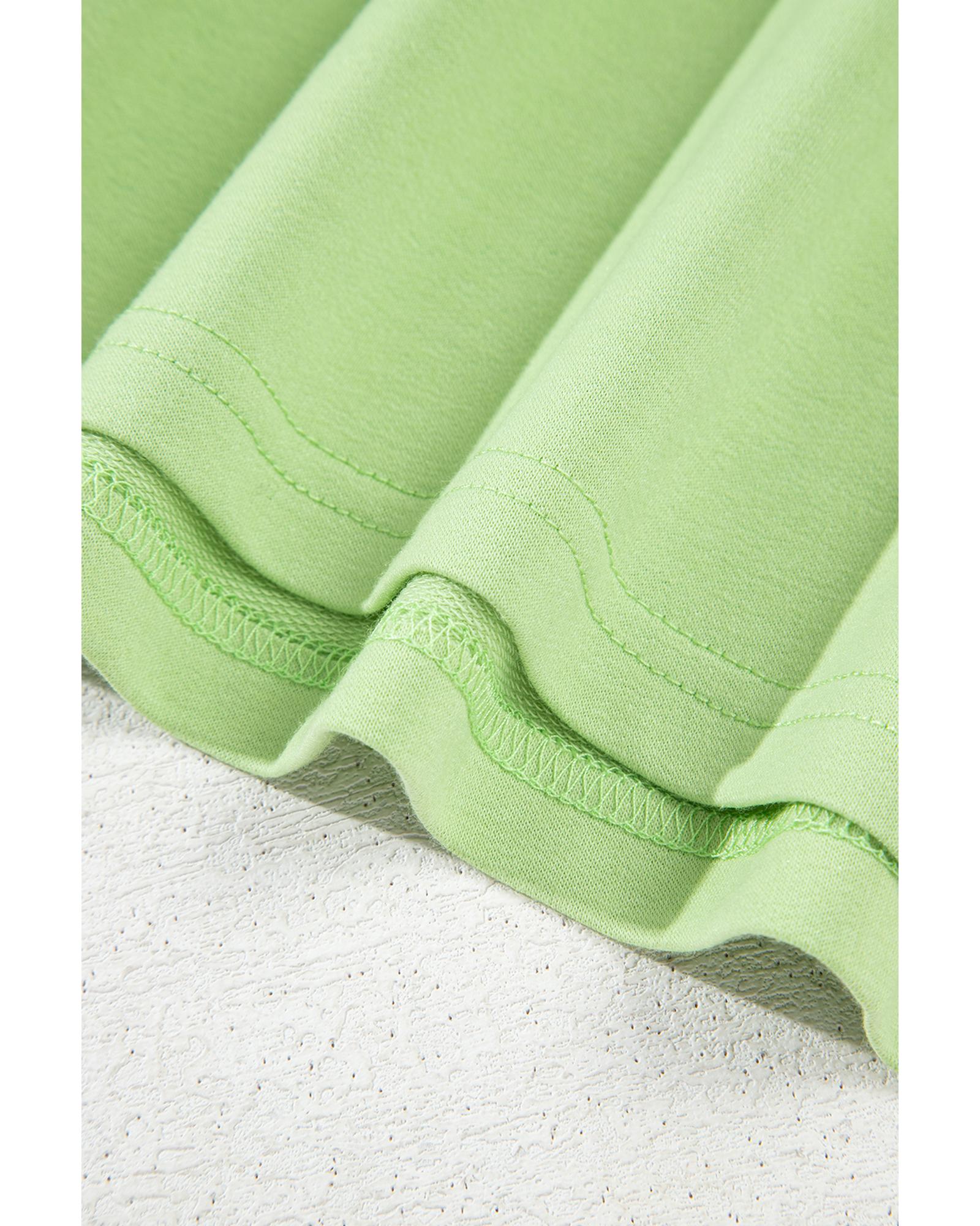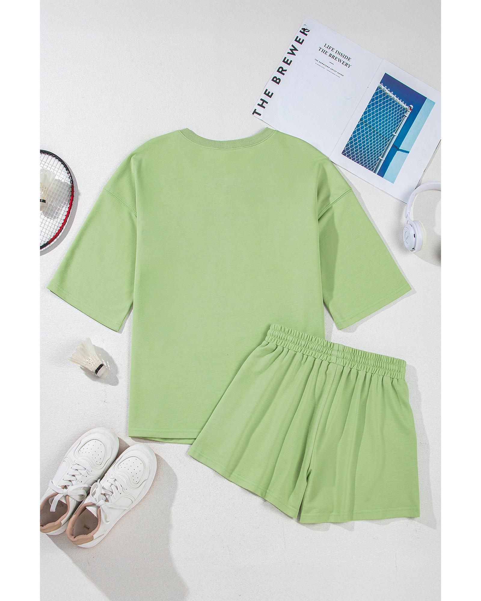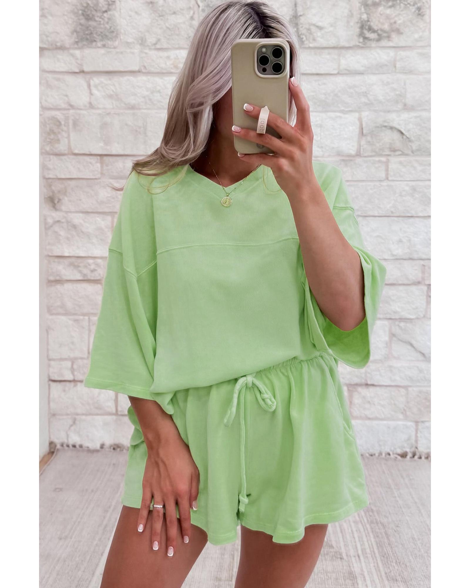 Meadow Mist Green Solid Loose V Neck Half Sleeve Tee and Shorts – S