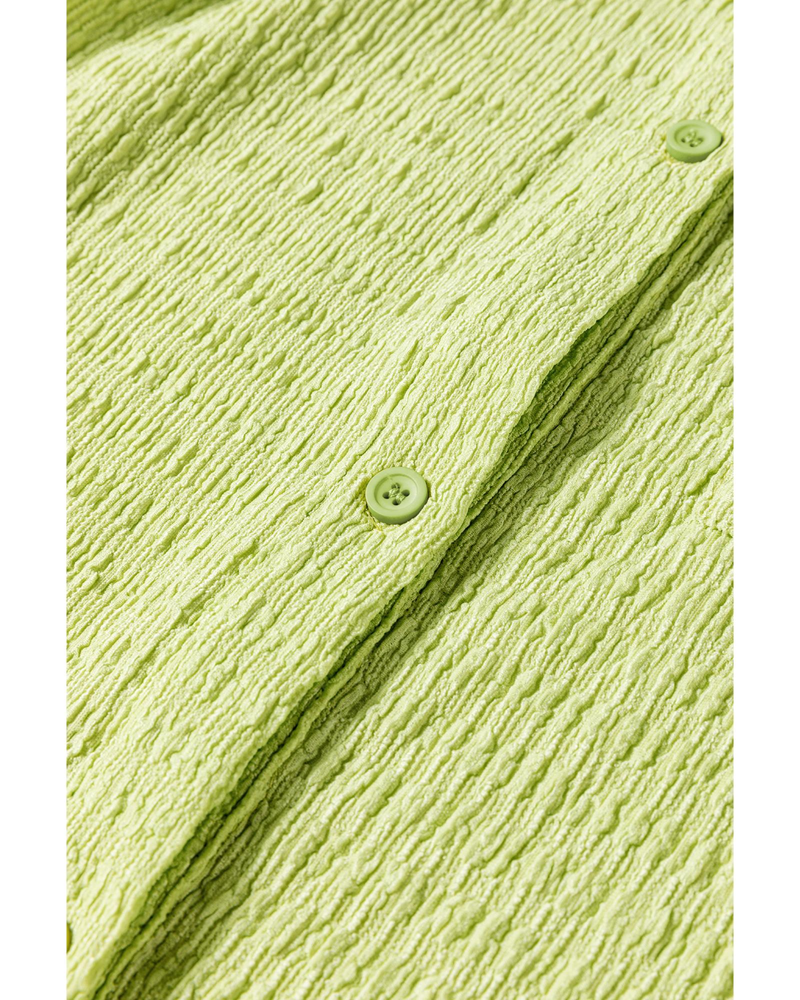 Meadow Mist Green Textured Short Sleeve Patched Pocket Buttoned Shirt Romper - L