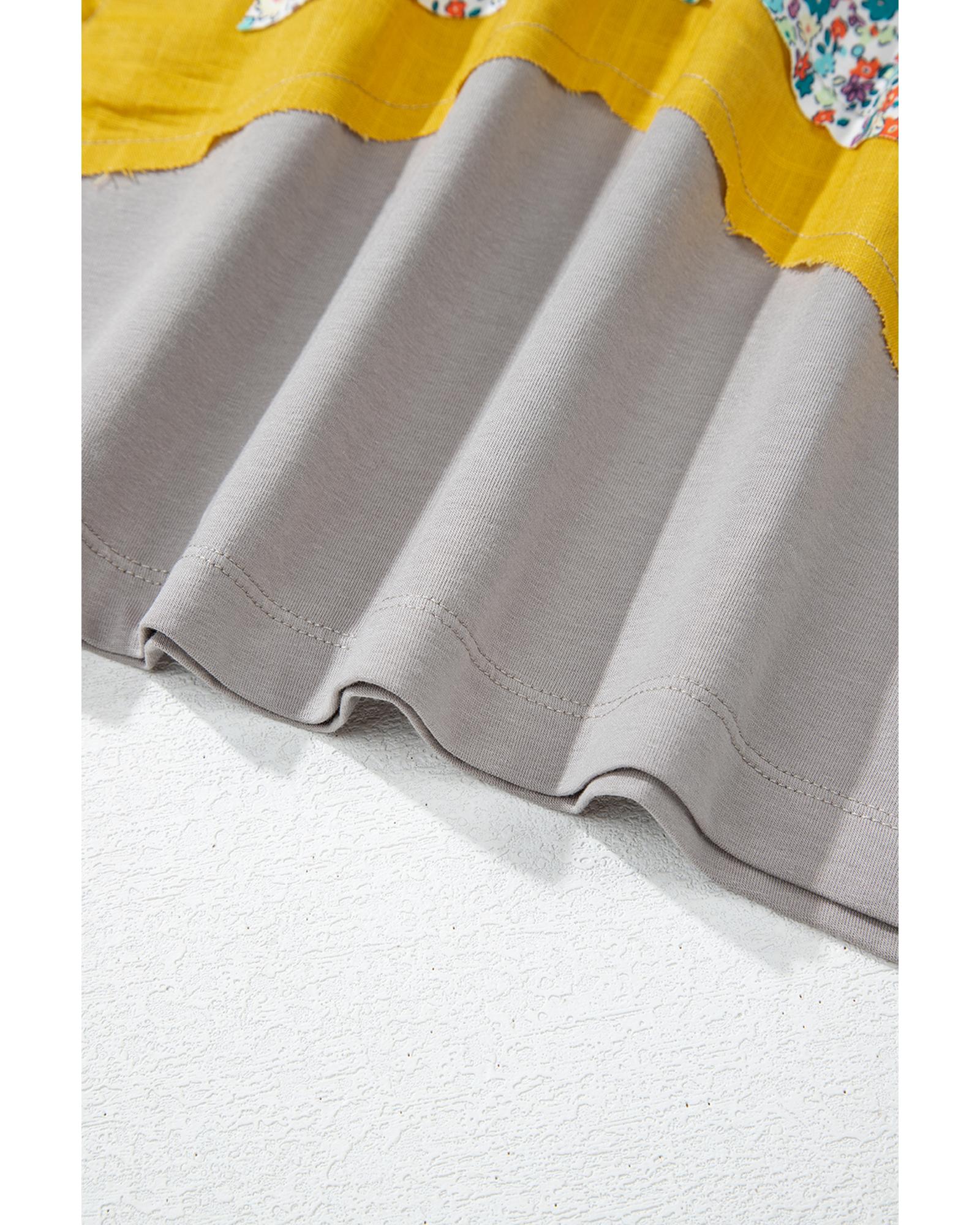 Medium Grey Floral Star Patched Pattern 3/4 Sleeve Plus Size Top – 2X