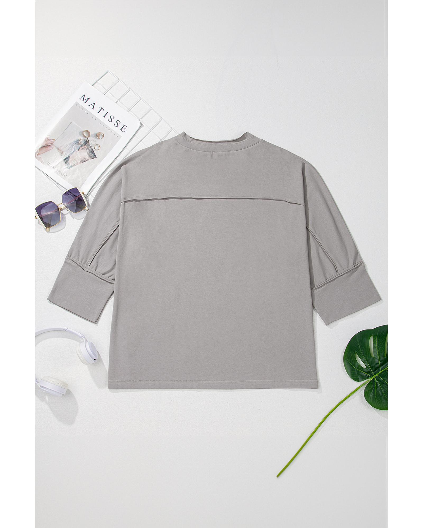 Medium Grey Floral Star Patched Pattern 3/4 Sleeve Plus Size Top – 4X