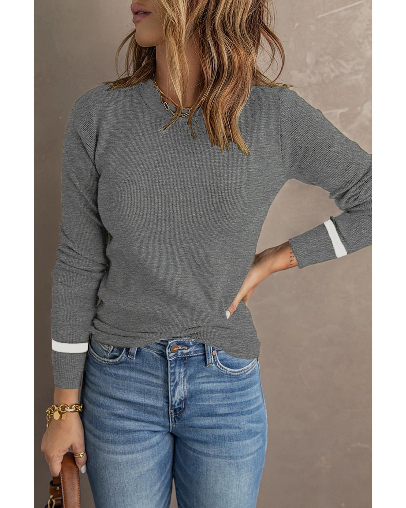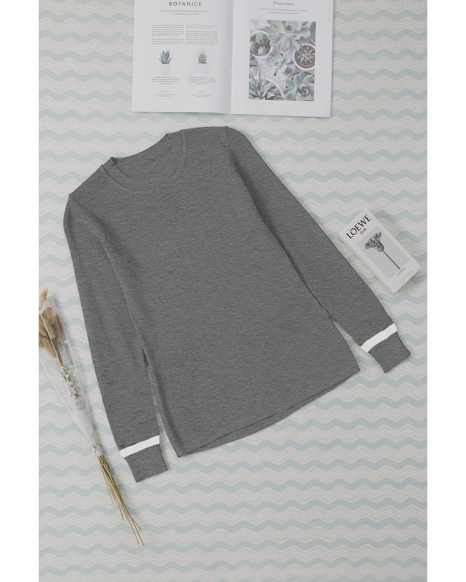 Medium Grey Ribbed Trim Crew Neck Long Sleeve Sweater – L