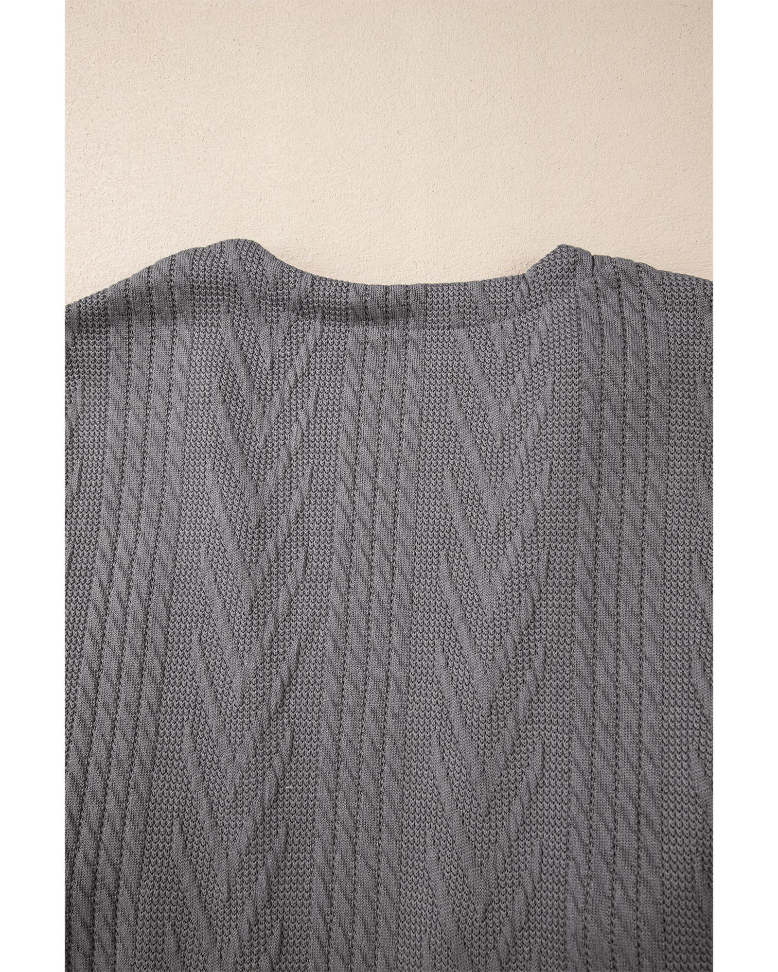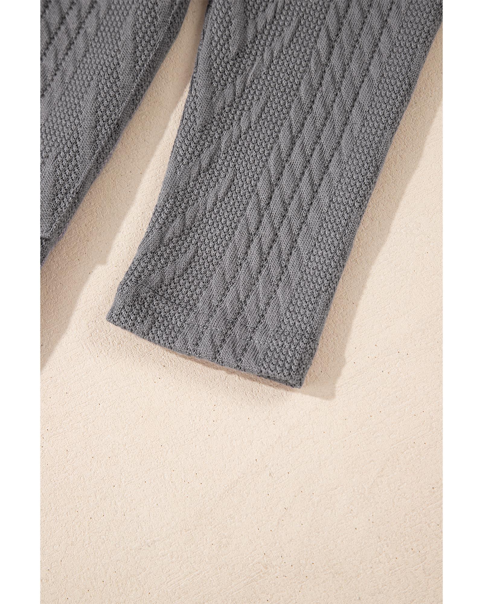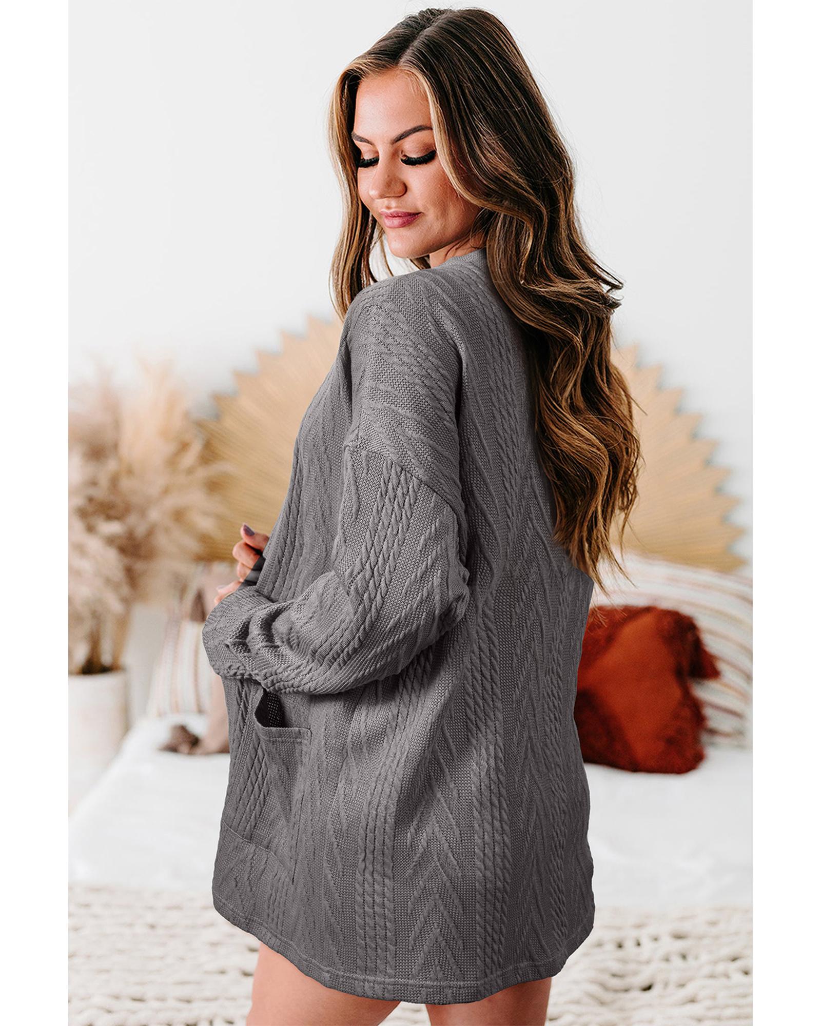 Medium Grey Solid Textured Open Front Cardigan with Pocket – S