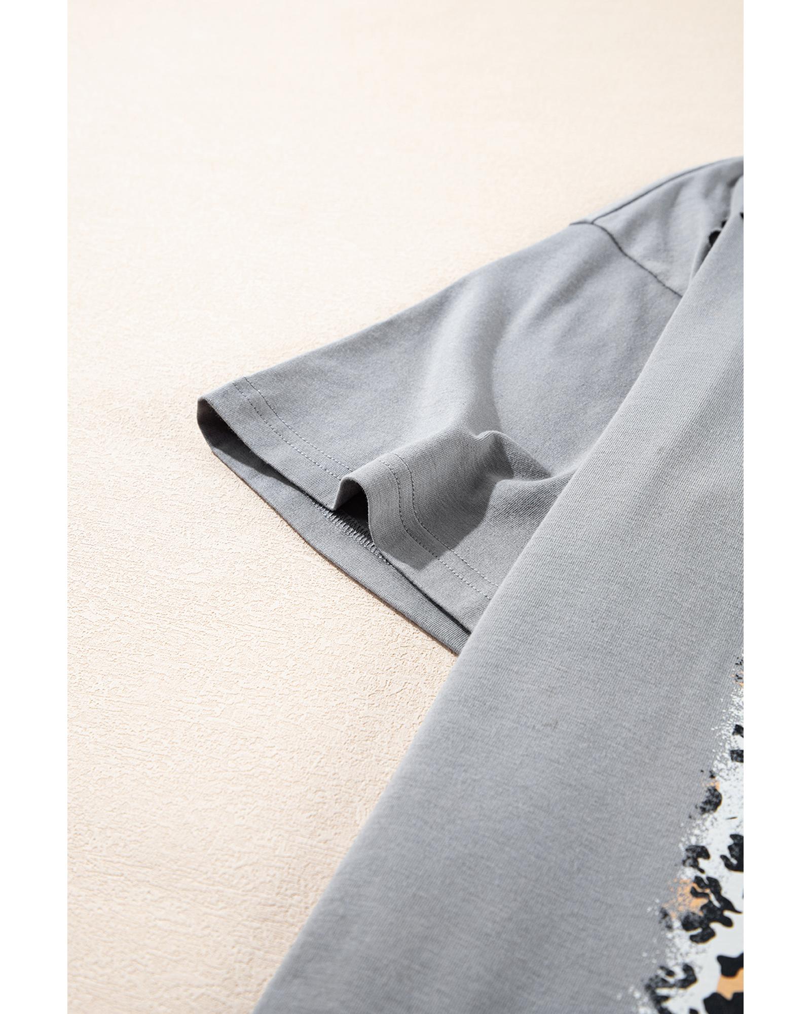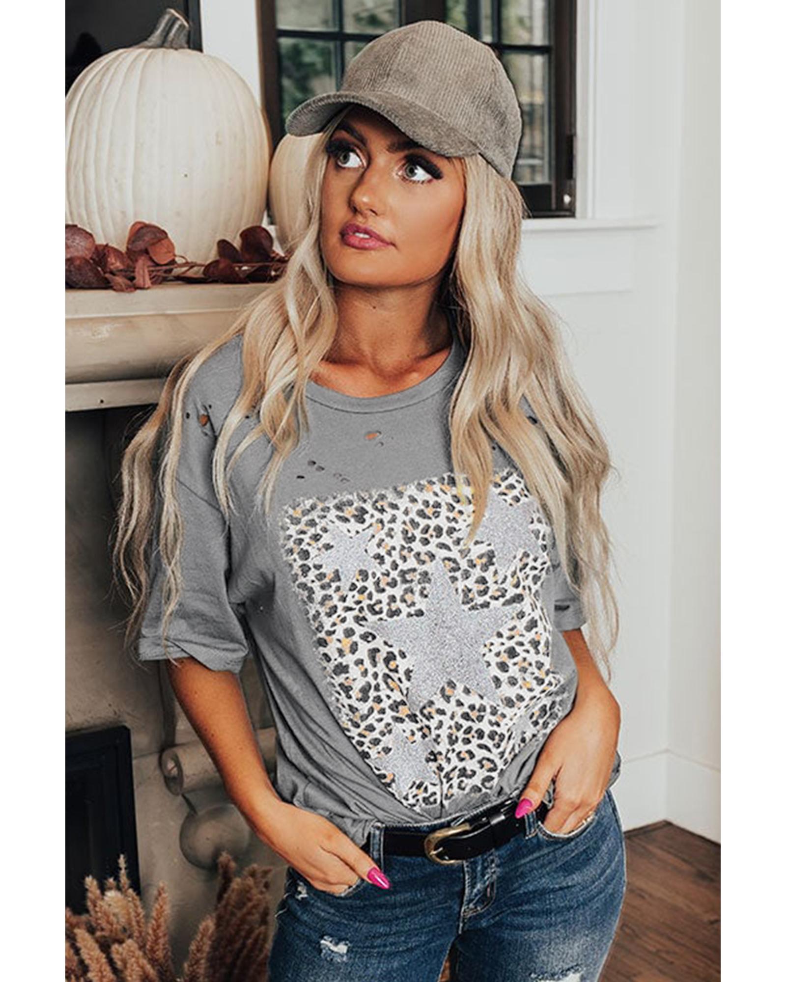 Medium Grey Stars Leopard Graphic Distressed Tee – L