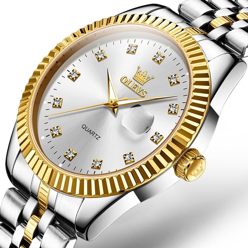Men Luminous Waterproof Quartz Watch with Diamond Accents – Gold