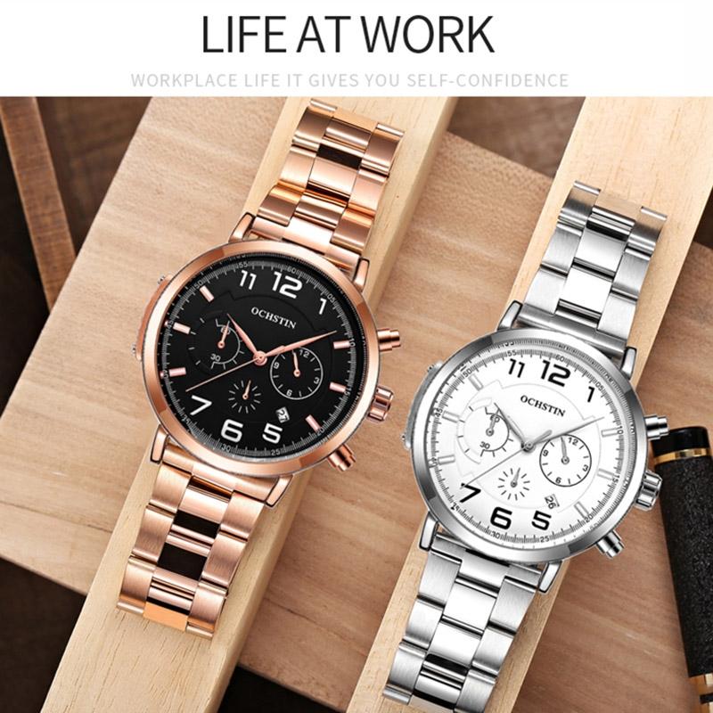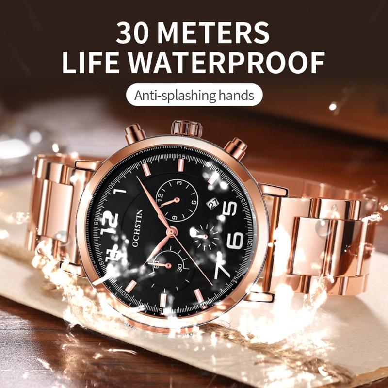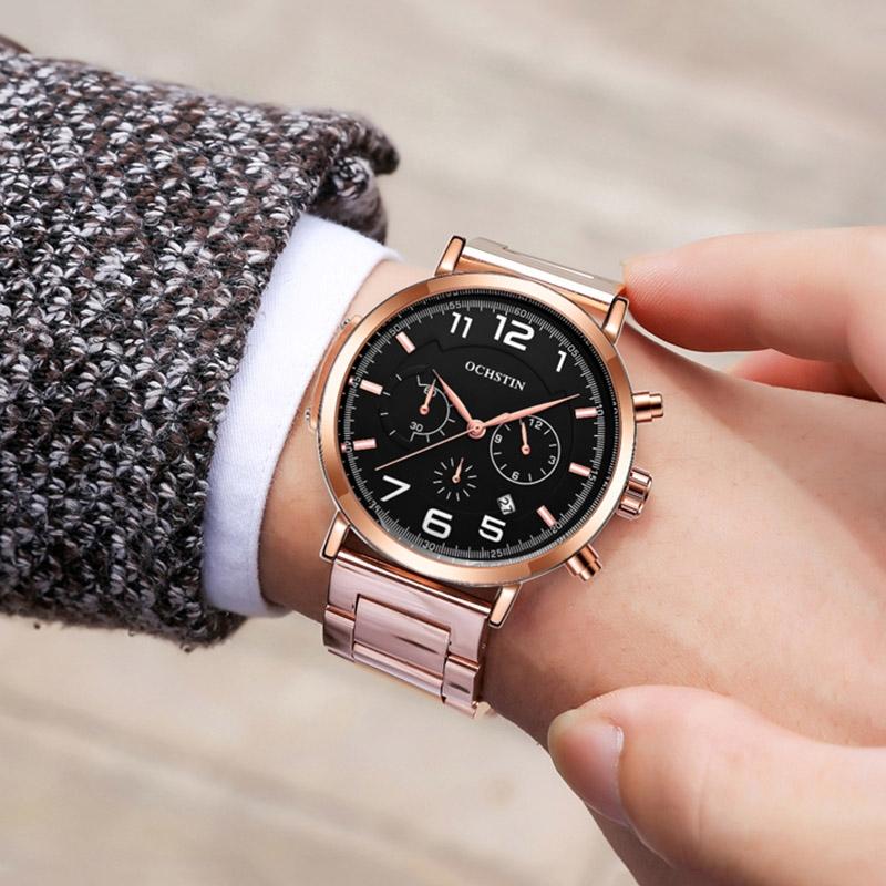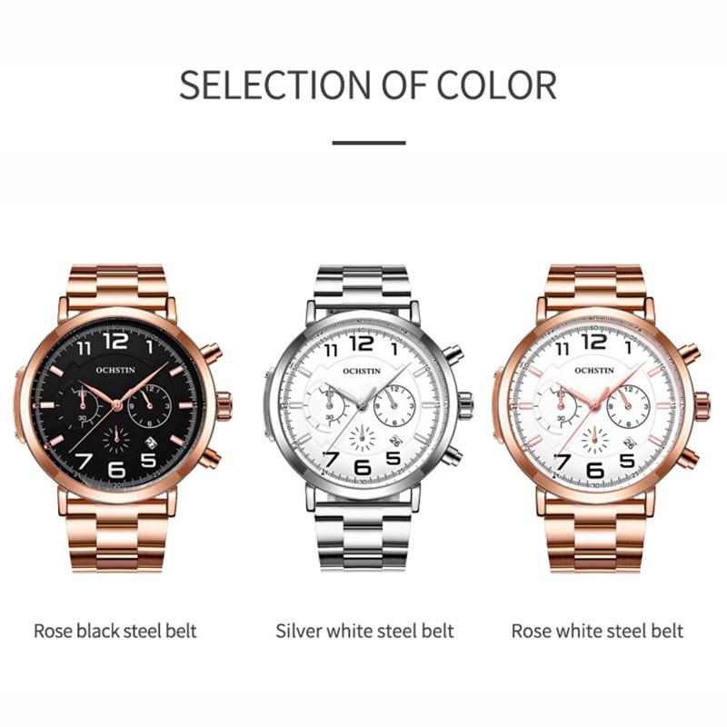 Men Multifunction Steel Quartz Watch with Steel Strap – Rose Gold White