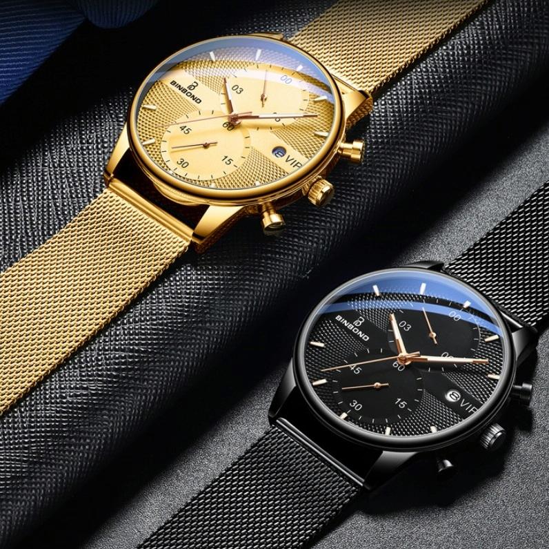 Men Multifunctional Luminous Quartz Watch – Business Style – Black Mash Black Shell Black Surface