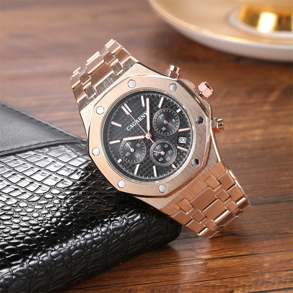 Men Simple Steel Quartz Watch with Band – 6835 – Rose Gold + Black