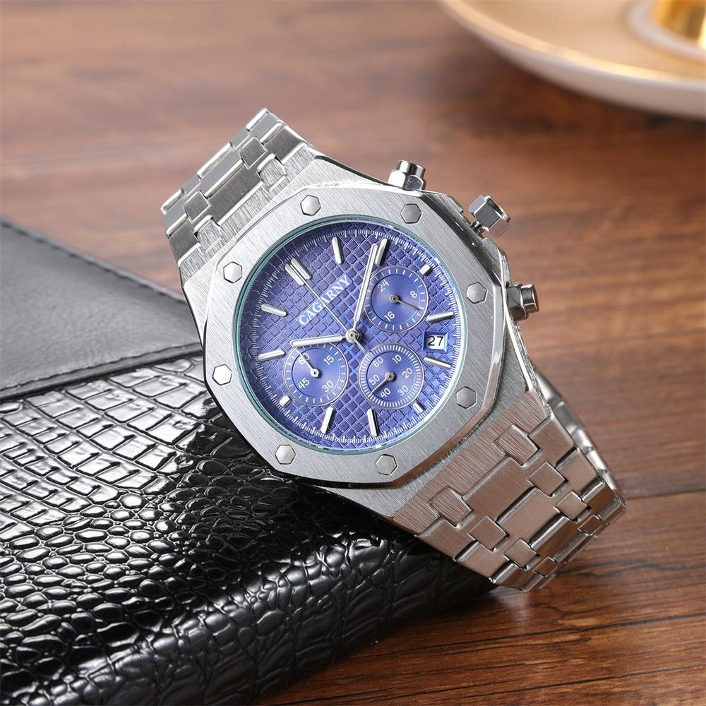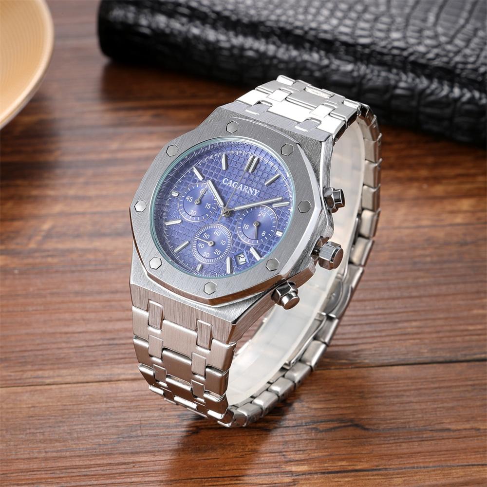 Men Simple Steel Quartz Watch with Band – 6835 – Silver + Blue