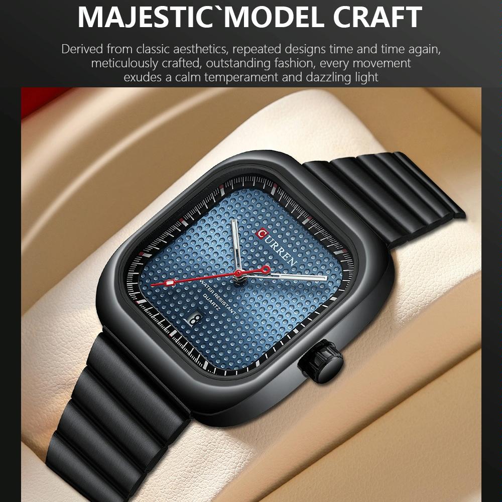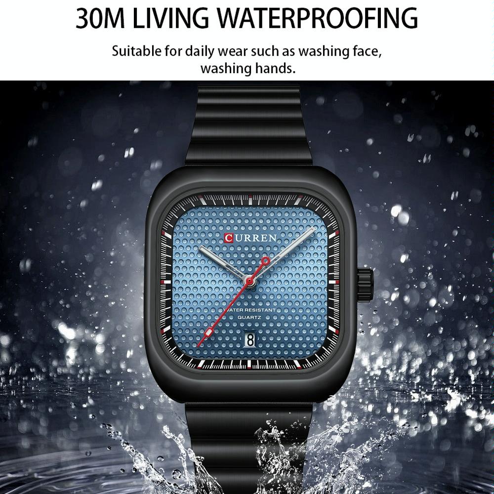 Men Square Steel Strap Quartz Watch – Casual Style – Black Shell Black