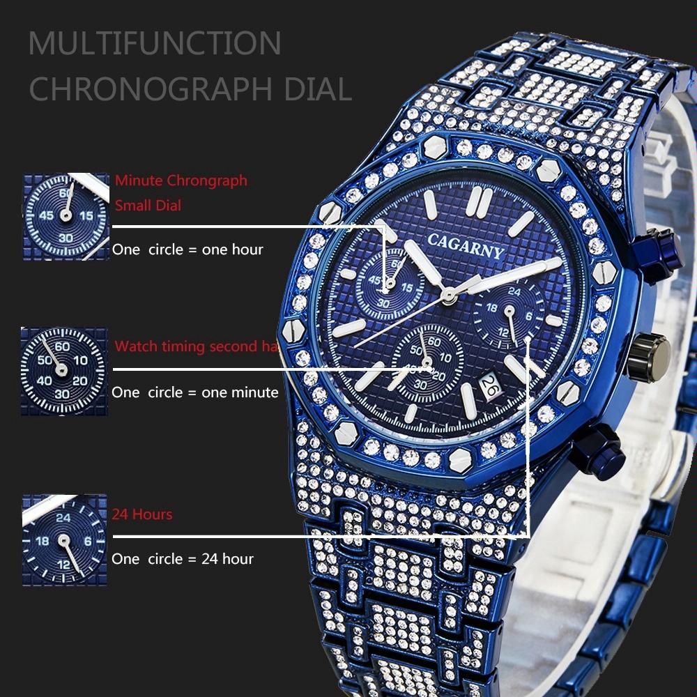 • 1 x 6881 Diamond-Studded Six-Needles Guartz Dual Movement Watch For Men With Stainless Steel Strap