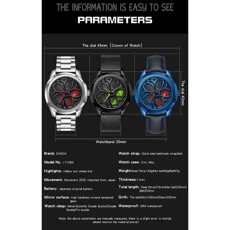 • 1 x 1065 3D Hollow Out Wheel Non-Rotatable Dial Quartz Watch For Men Steel Belt