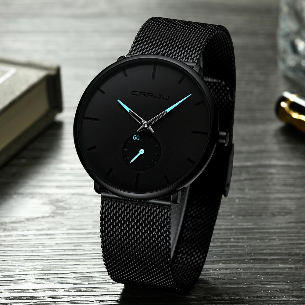 Men Waterproof Quartz Watch with Small Seconds and Mesh Band – Blue Pointer