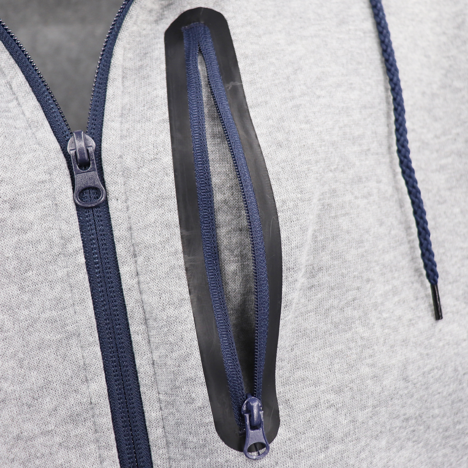 Men’s Adult Full Zip Hoodie Jumper Active Two-Tone Jacket Coat Sports Zip Pocket, Navy, M