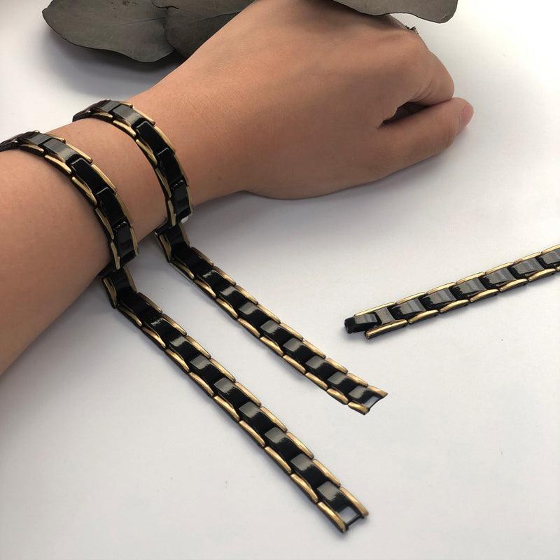 Mens Double Strong Magnetic Therapy Bracelet Arthritis Pain Relief Jewelry Au – Black Gold