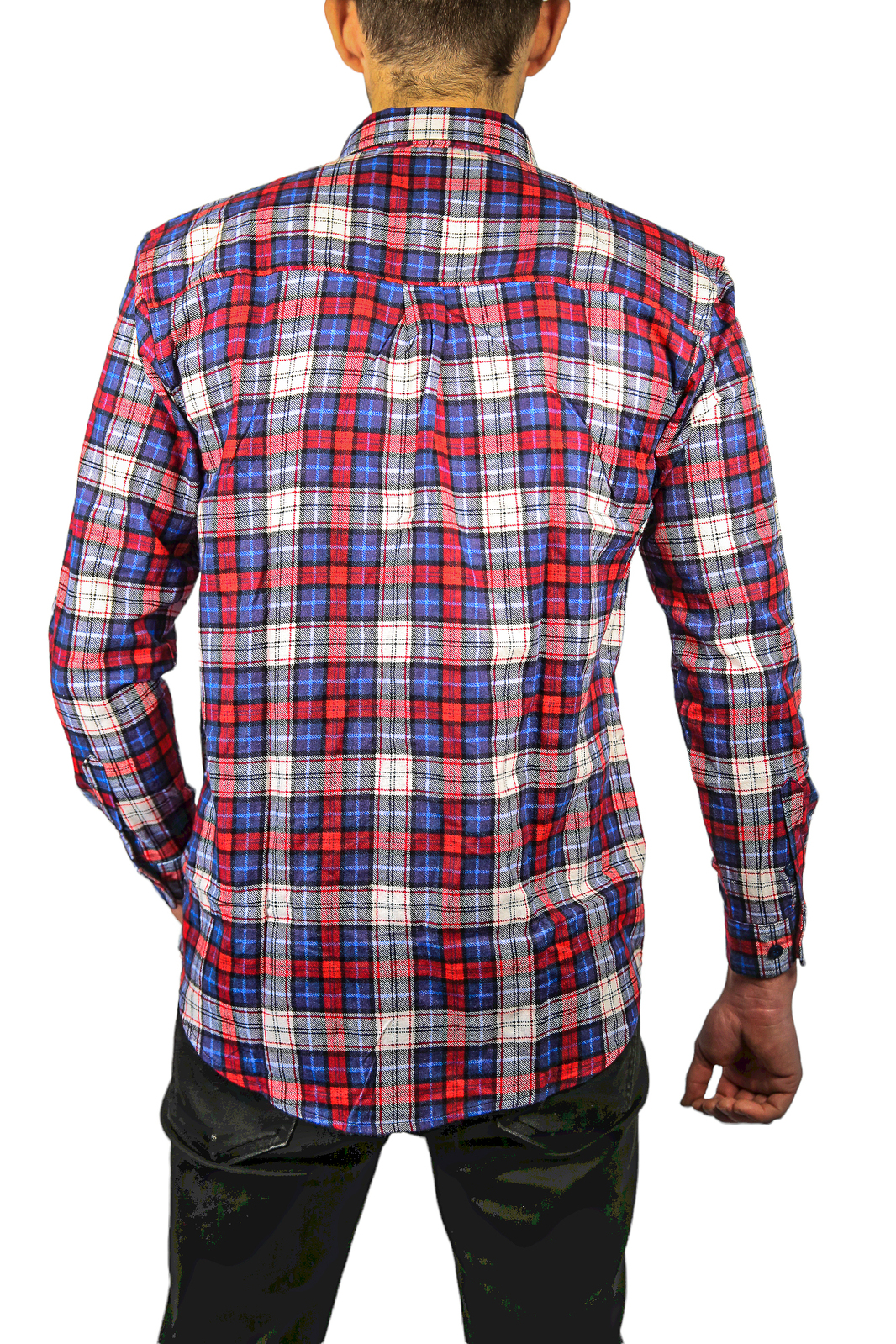 Mens Flannelette Long Sleeve Shirt 100% Cotton Check Authentic Flannel – Full Placket – Navy/Red/White – M