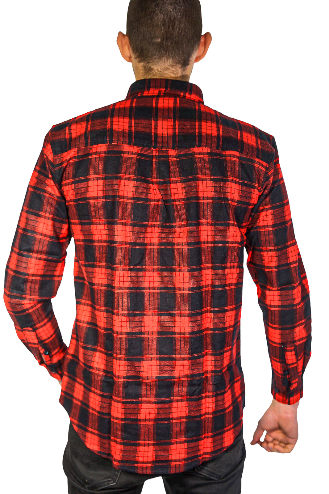 Mens Flannelette Long Sleeve Shirt 100% Cotton Check Authentic Flannel – Full Placket – Red – 3XL