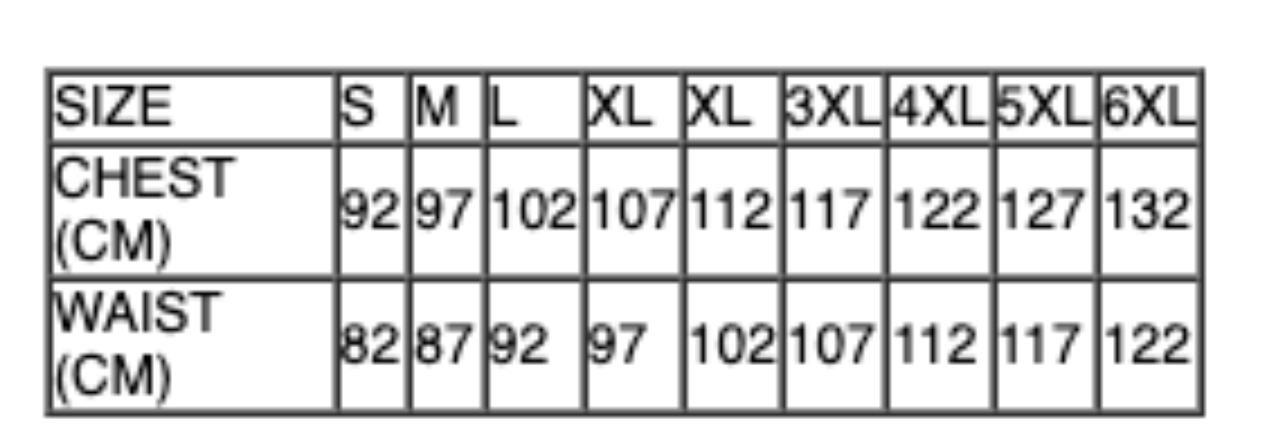 SIZE S M L XL XL 3XL 4XL 5XL 6XL
