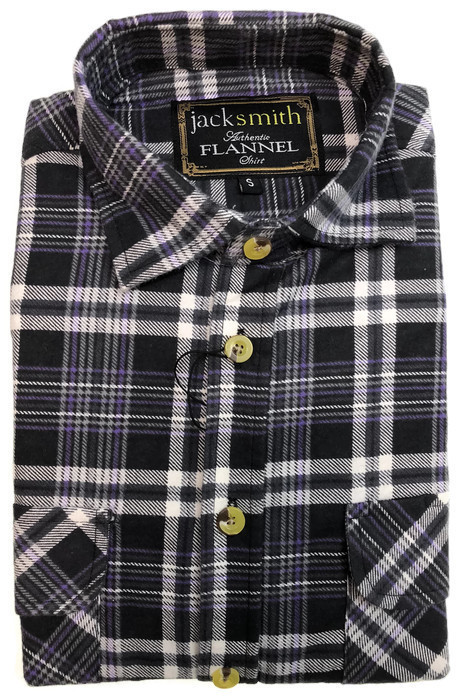 Mens Half Placket Flannelette Long Sleeve Pullover Shirt 100% Cotton Check Authentic Flannel – Black/Purple – S
