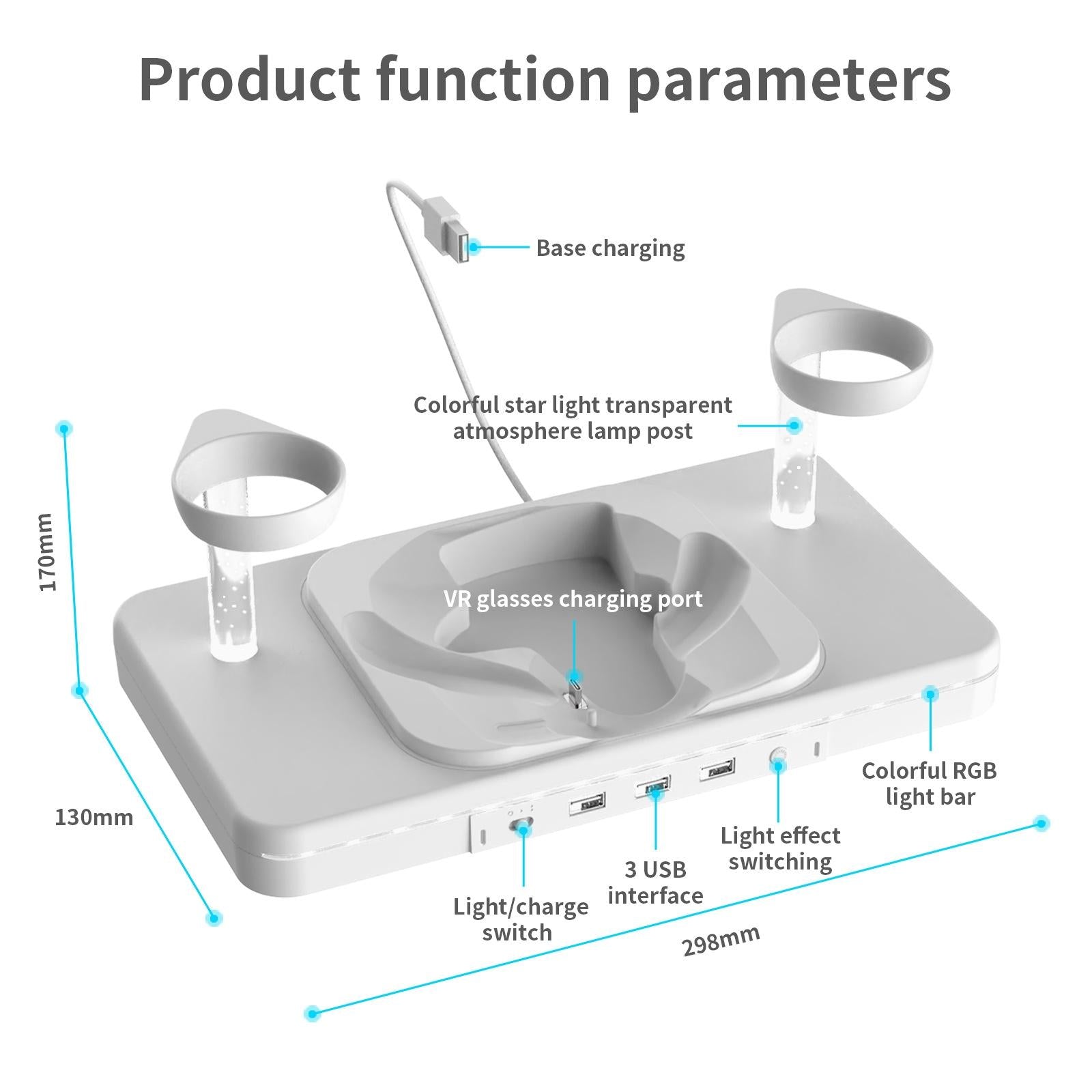 • 1 x For Meta Quest 2 Desktop Bracket Vr Glasses Wireless Charger Colourful Light Emitting Base White