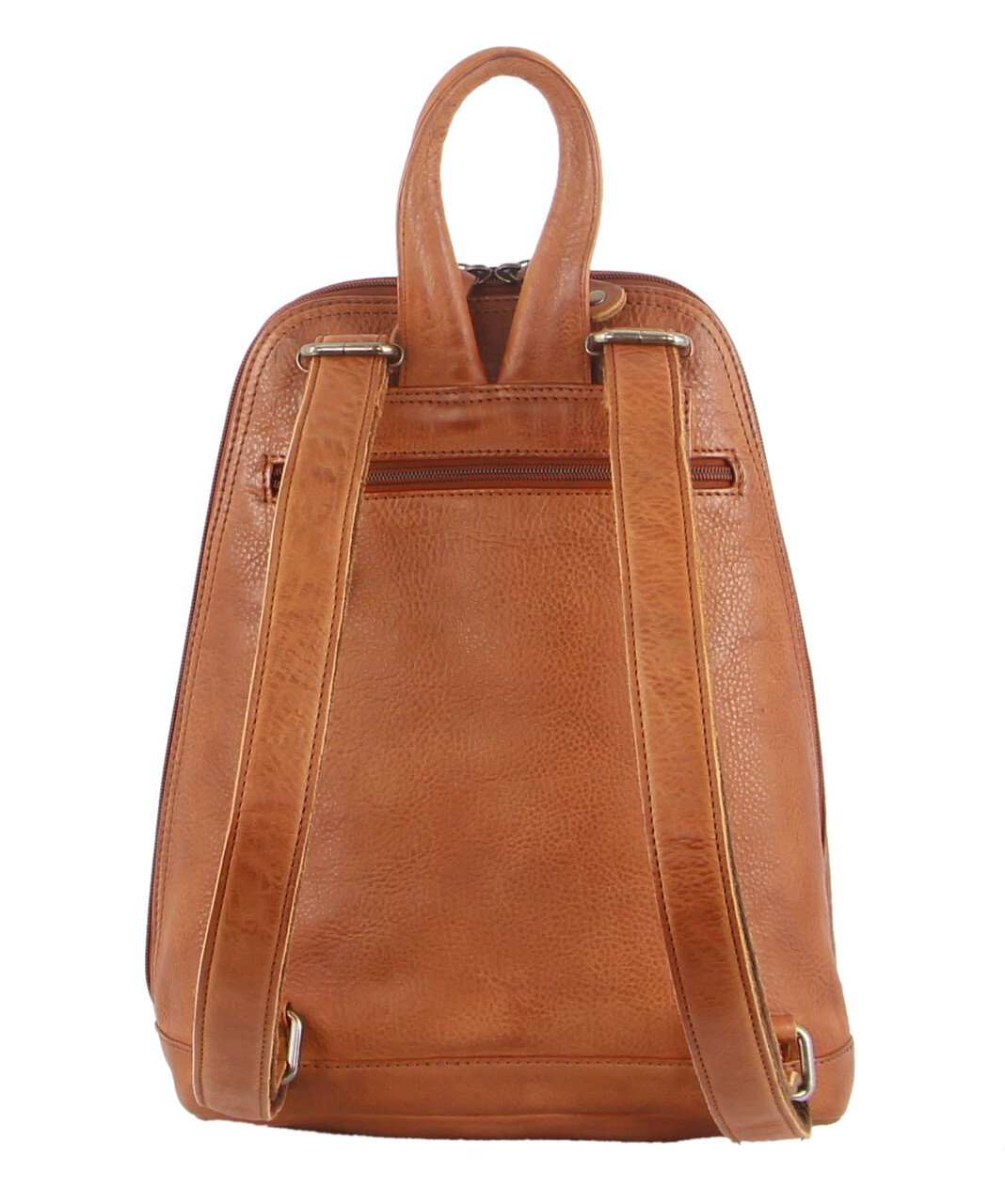 Milleni Ladies Genuine Italian Leather Backpack Bag Twin Zip - Cognac