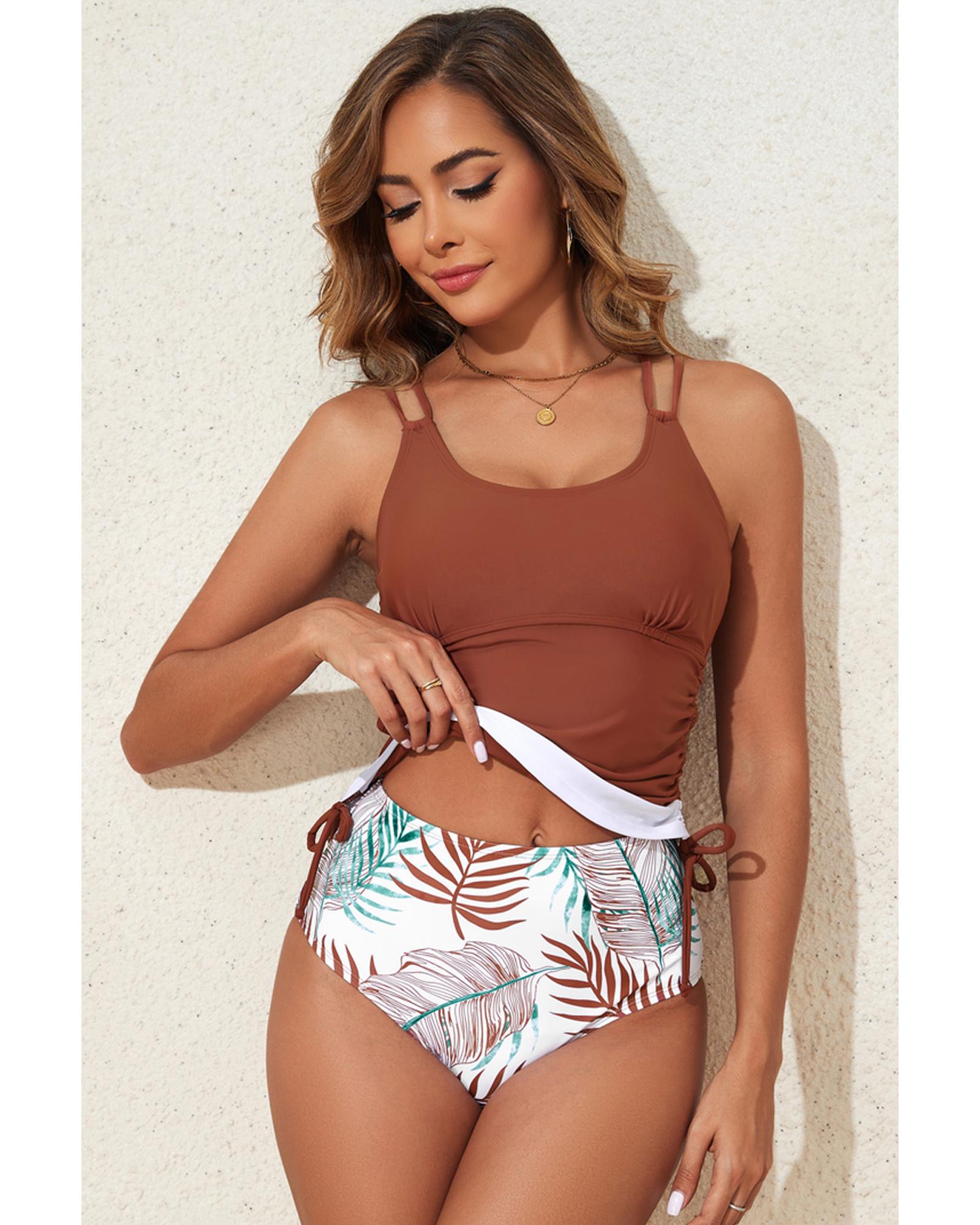 - Color block design for the tankini top