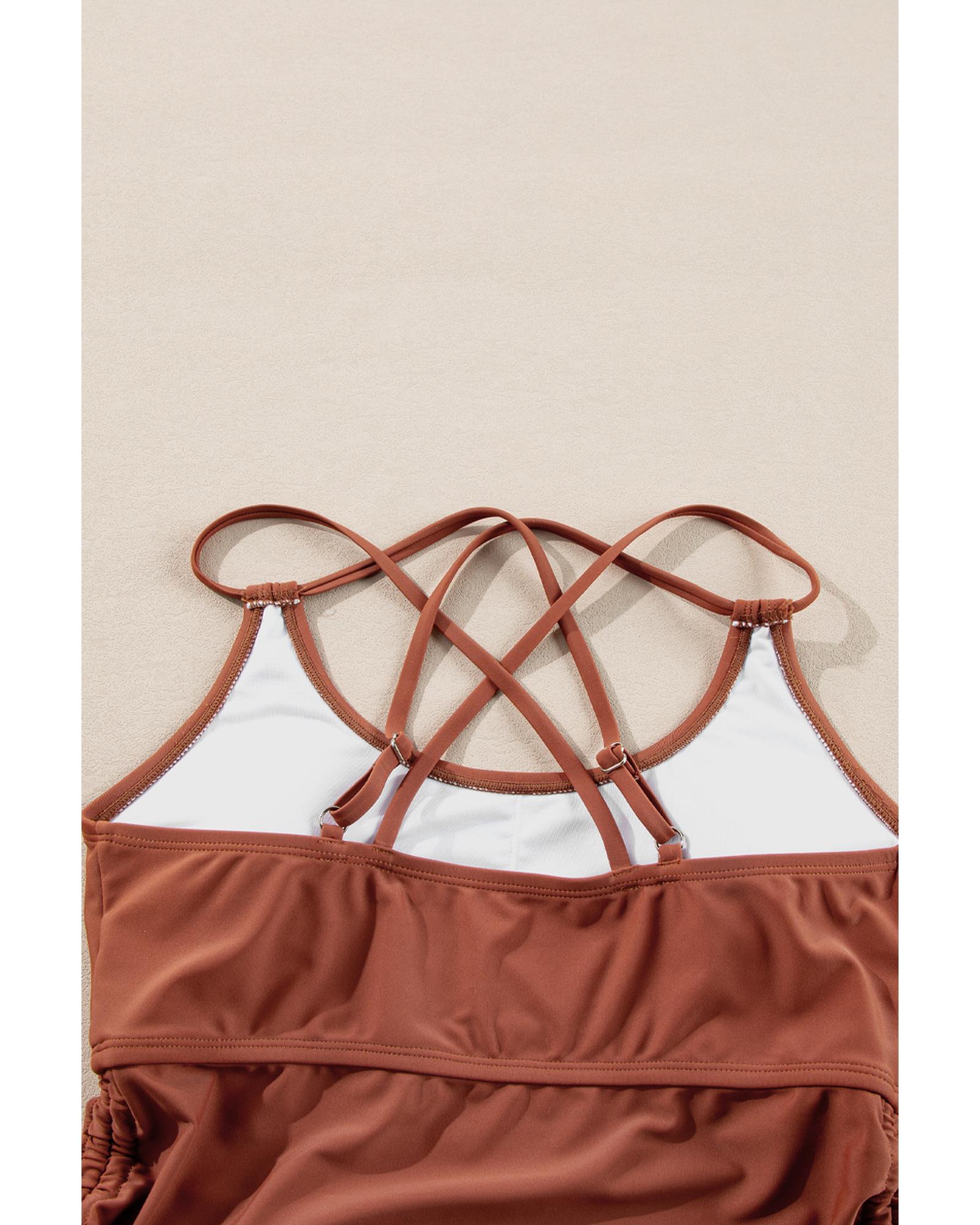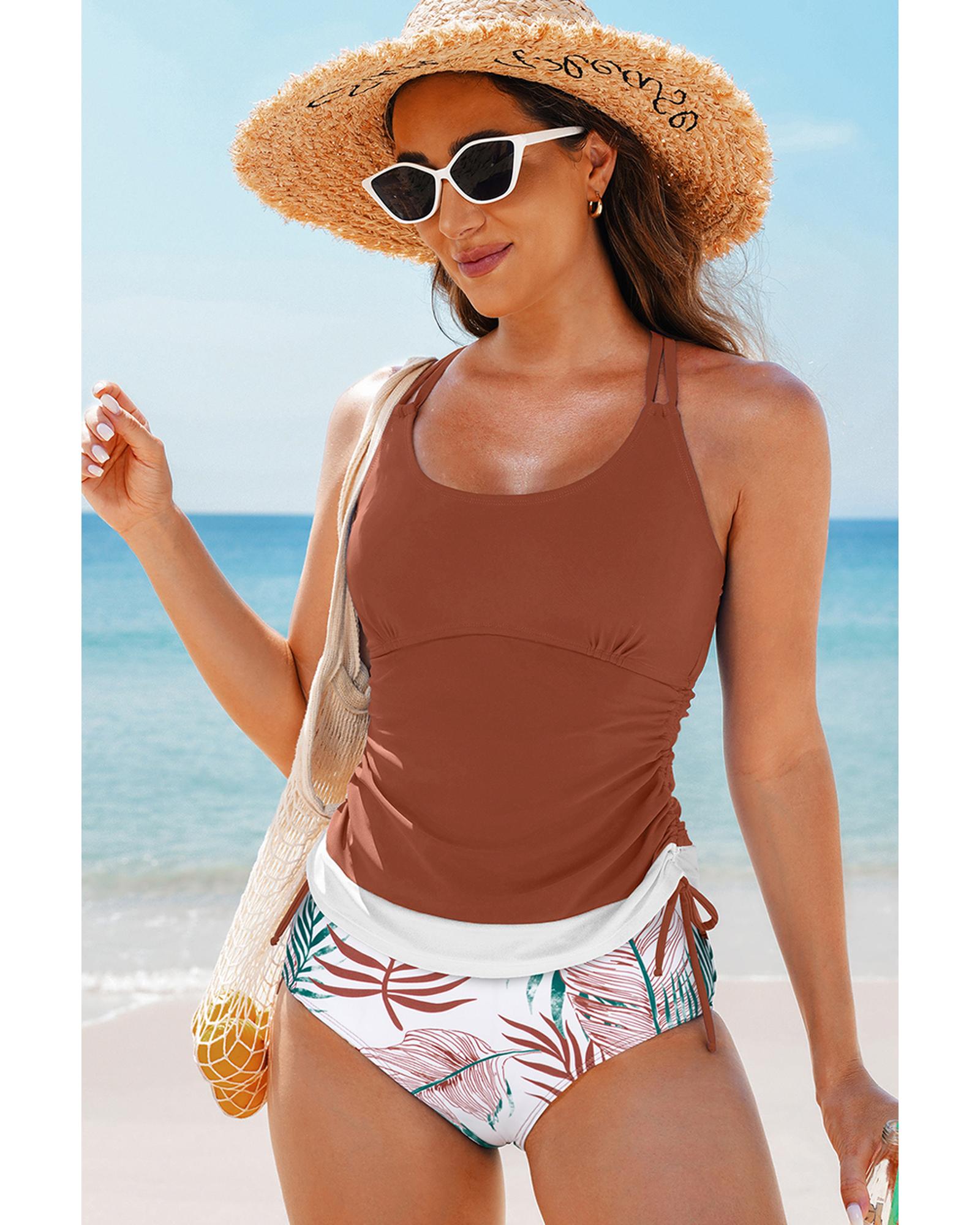 Mineral Red Drawstring Tummy Control Mix-and-match 2pcs Tankini Swimsuit – S