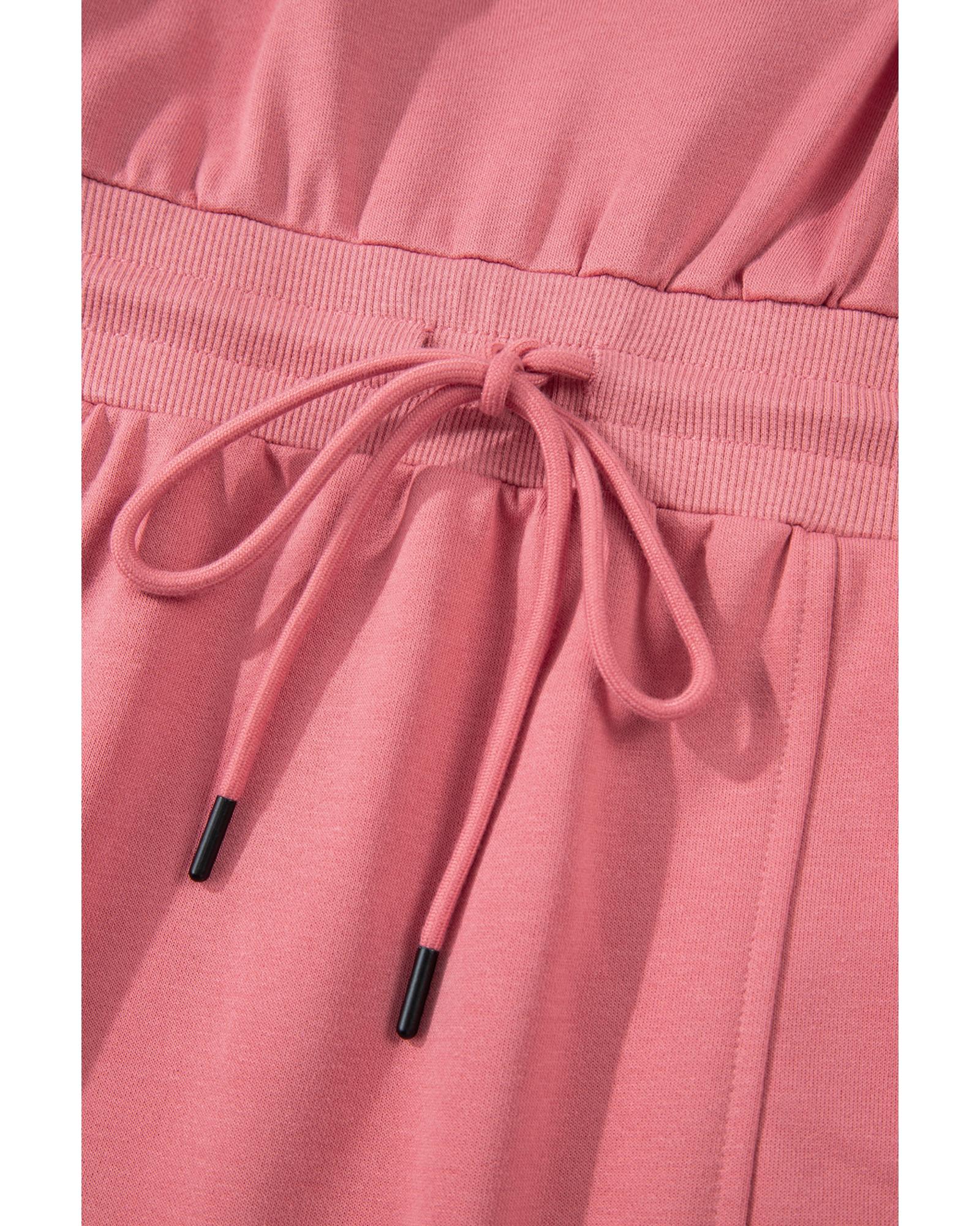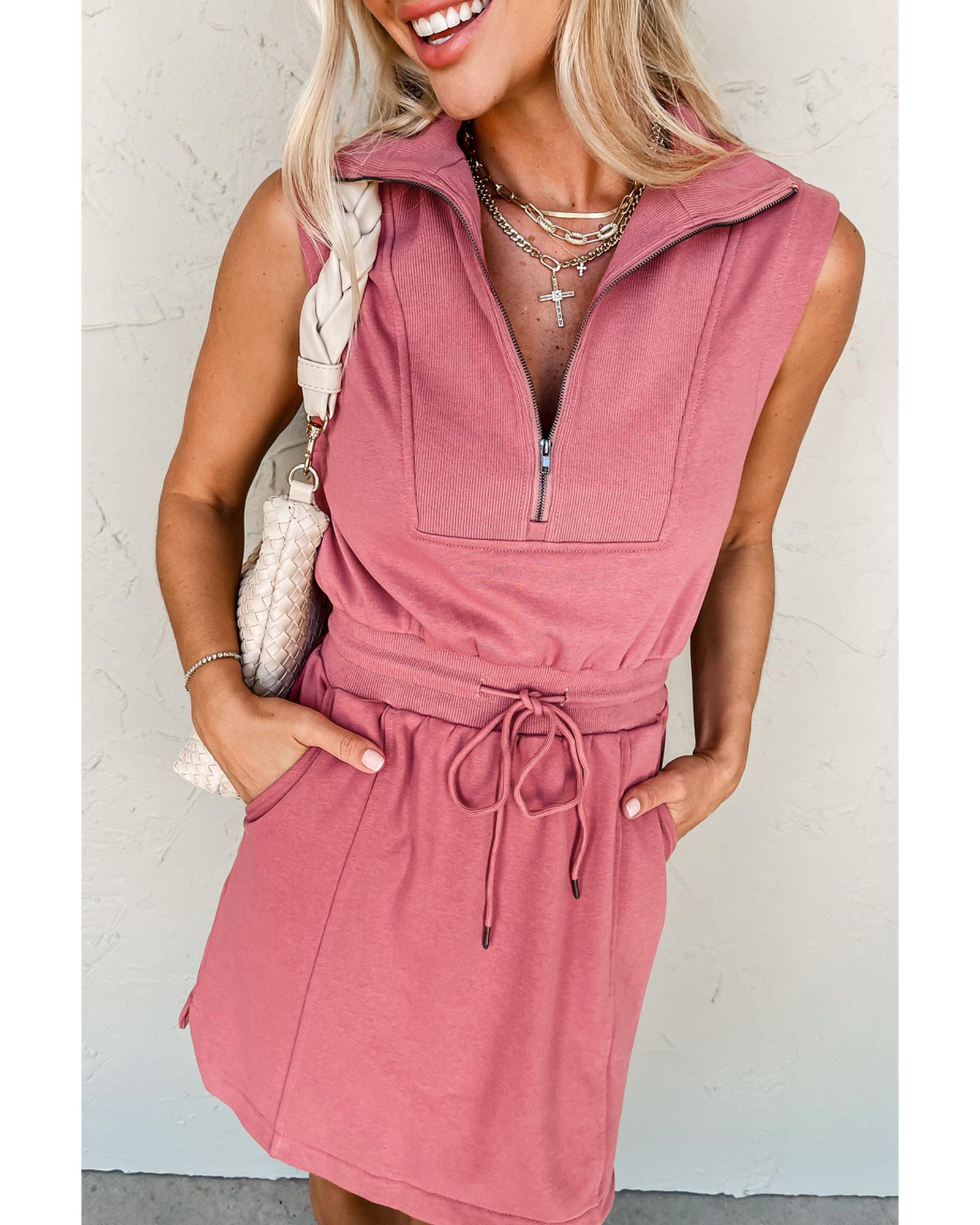 Mineral Red French Terry Zipped Collar Sleeveless Drawstring Waist Mini Dress – S