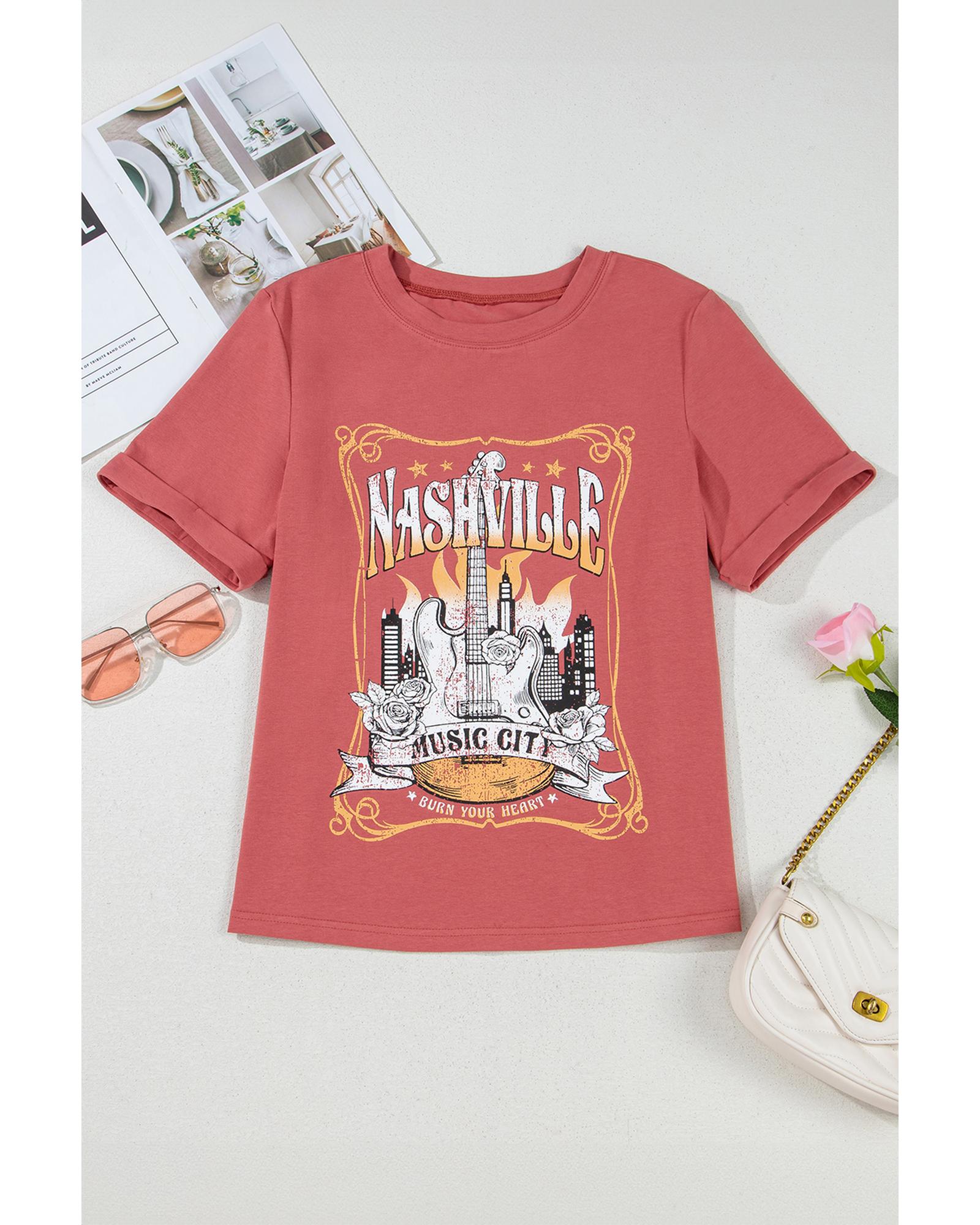 Mineral Red Nashville Music City Graphic Retro Fashion Tee – M