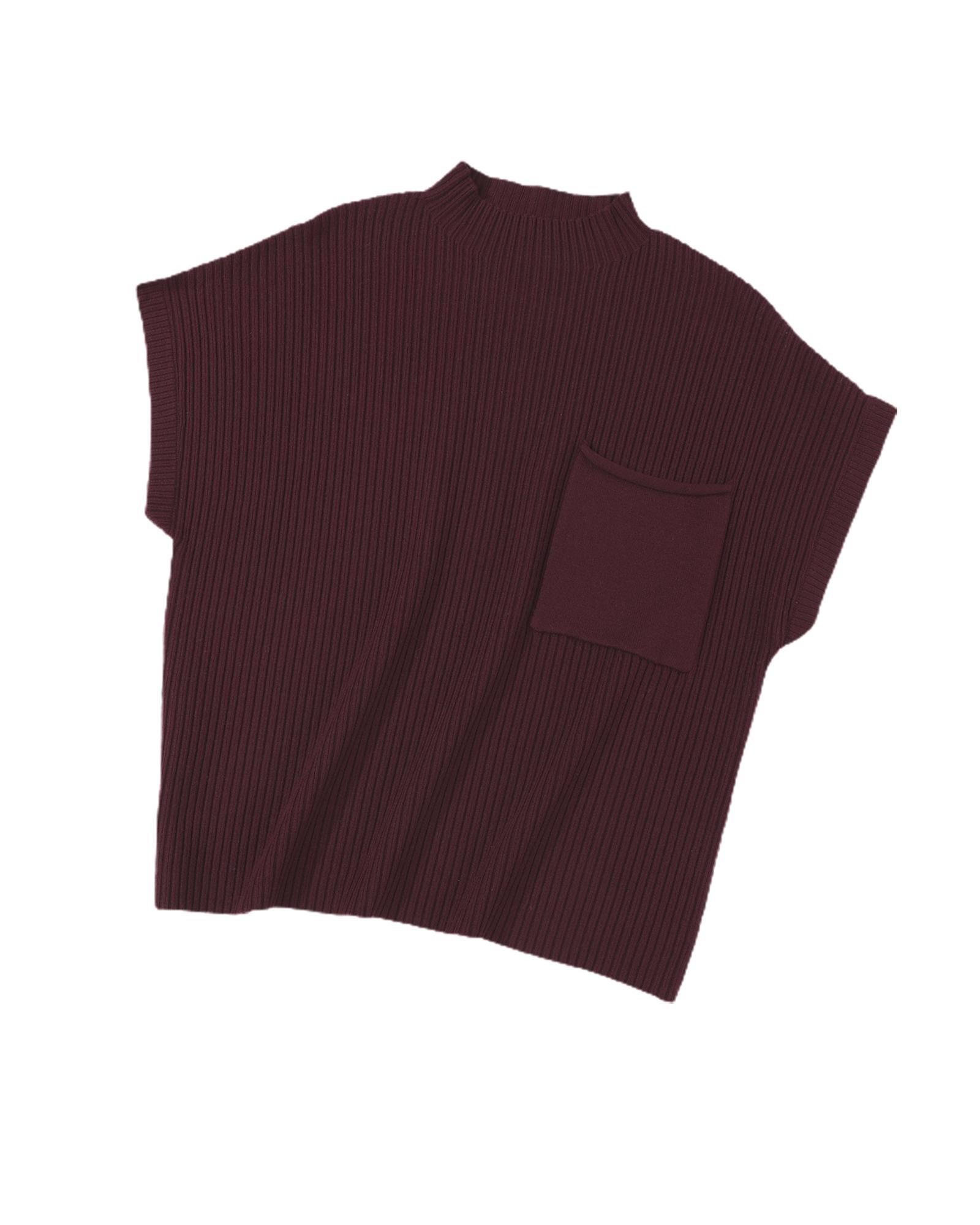 Mineral Red Patch Pocket Ribbed Knit Short Sleeve Sweater – 2XL