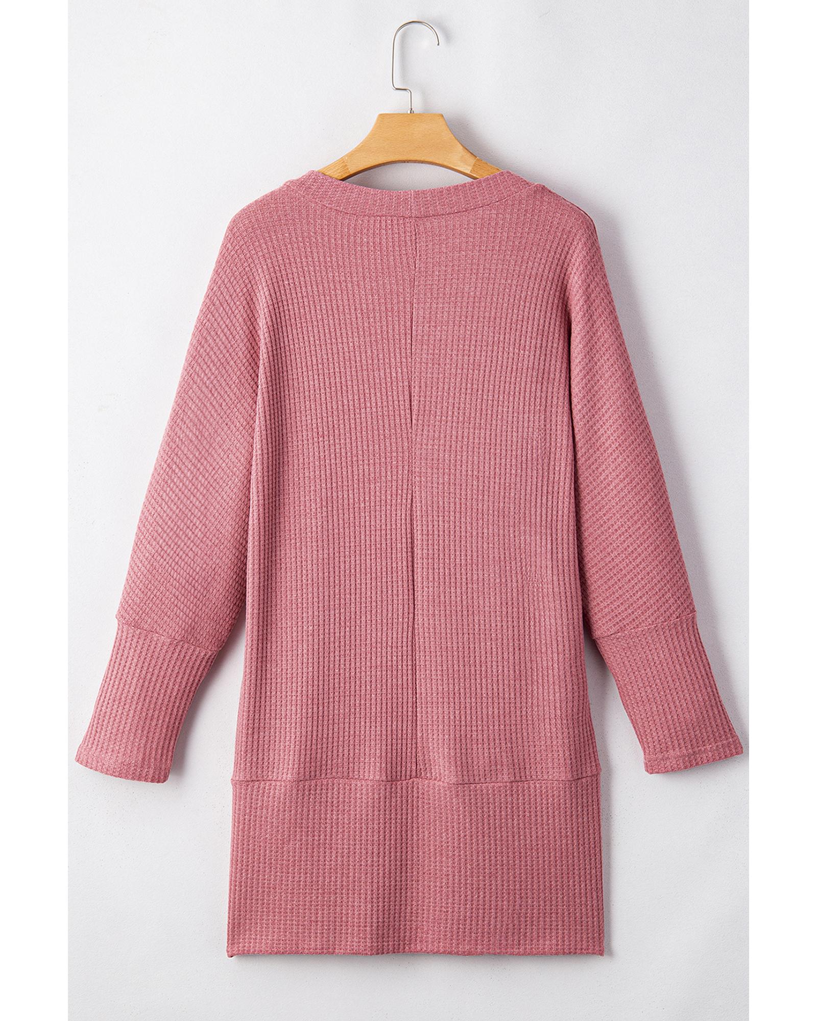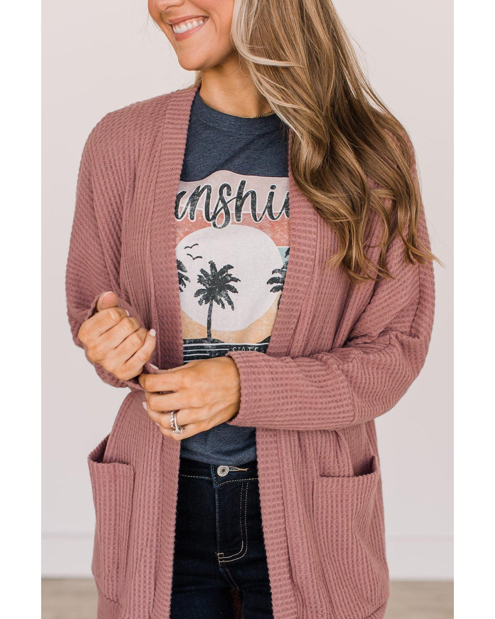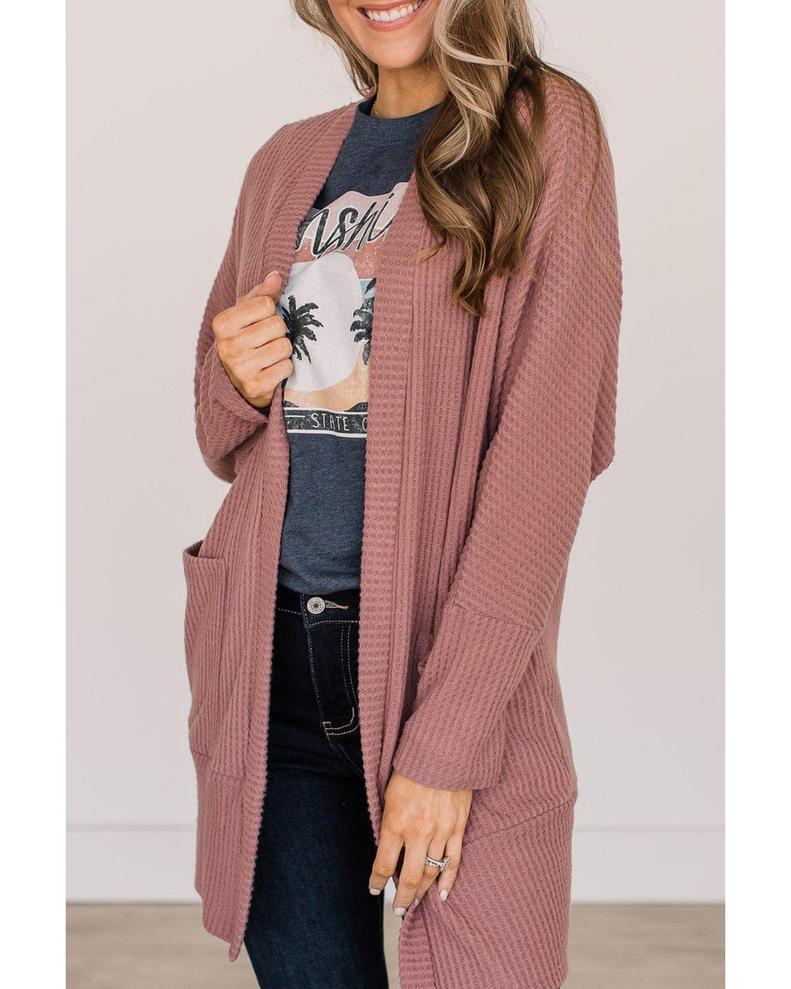 Mineral Red Solid Color Waffle Knit Cardigan with Pocket – M