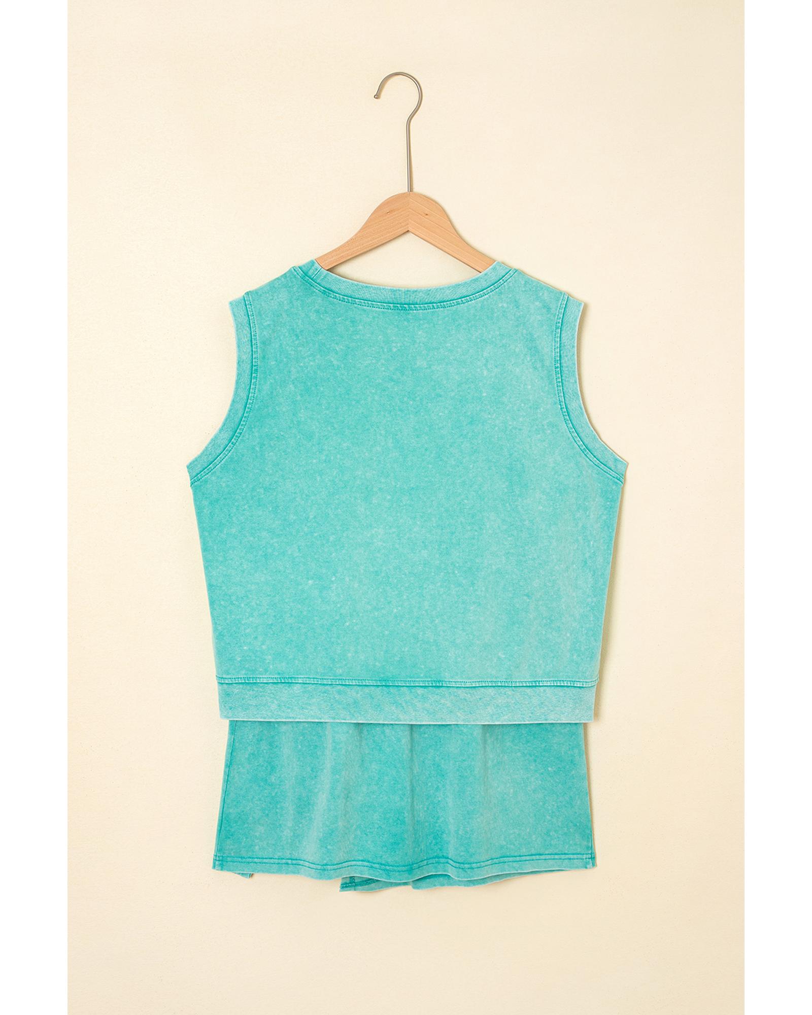 Mint Green 2 Pieces Mineral Wash Cotton Tank Top Lined Split Skirt Set – S