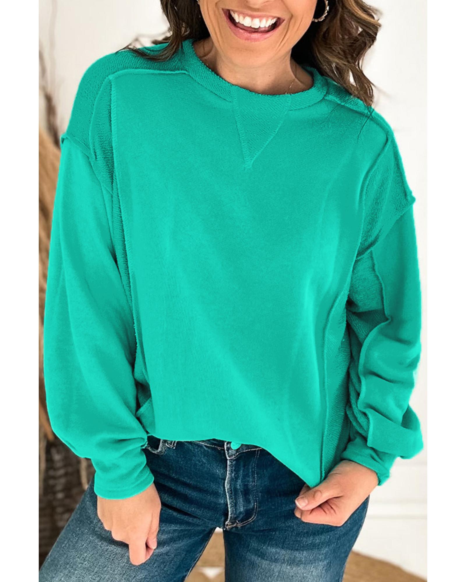 Mint Green Splicing Round Neck Pullover Sweatshirt – M