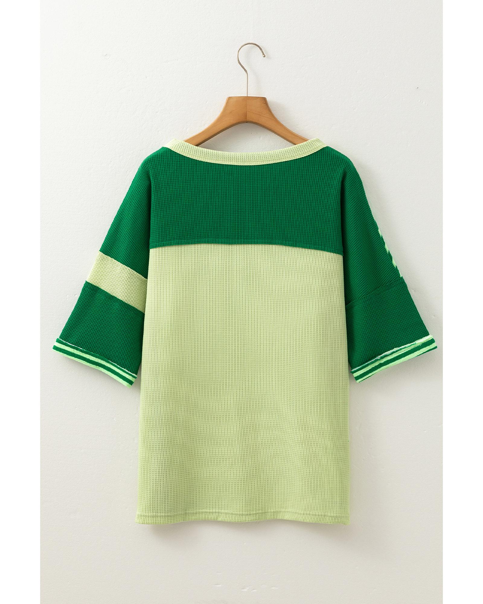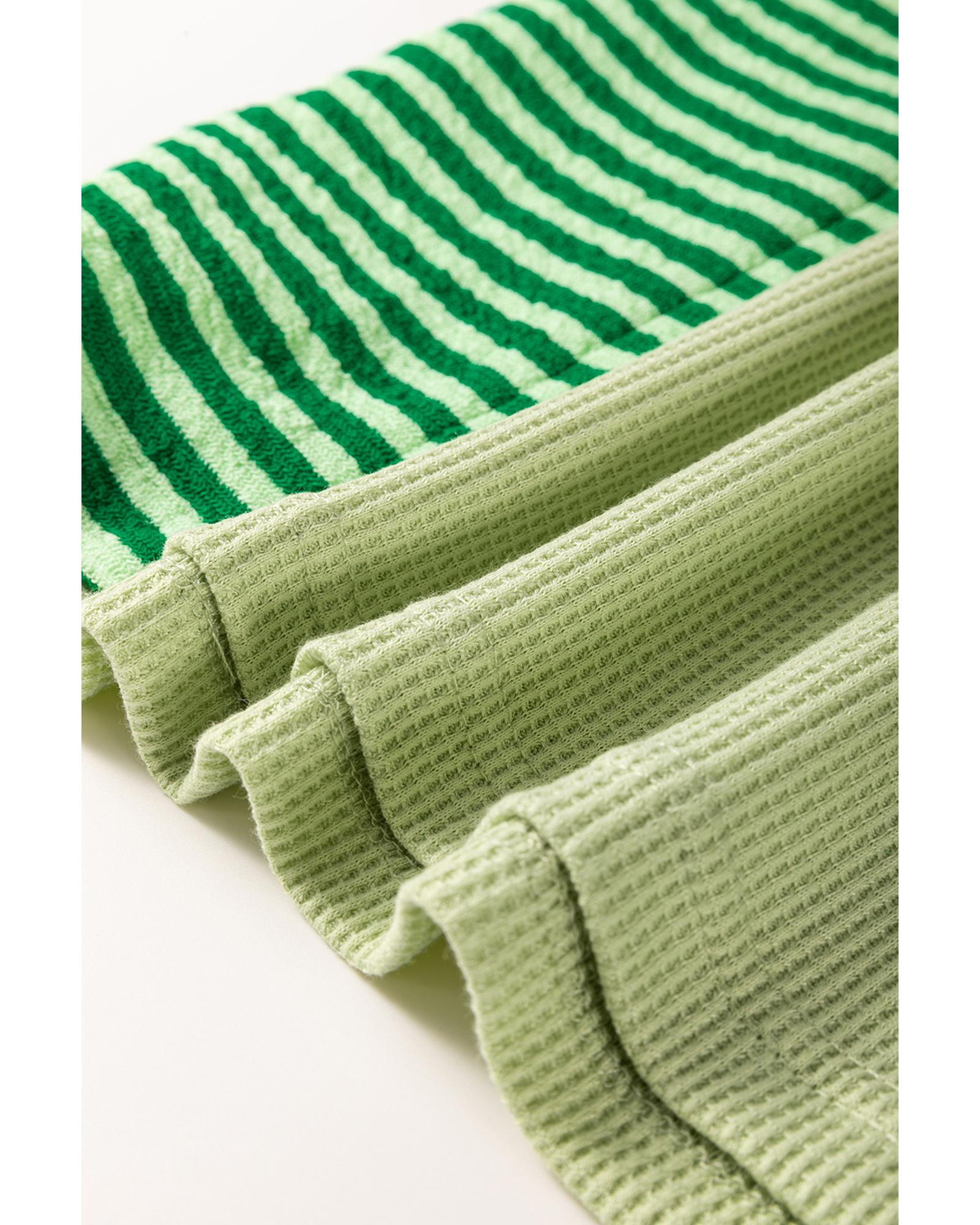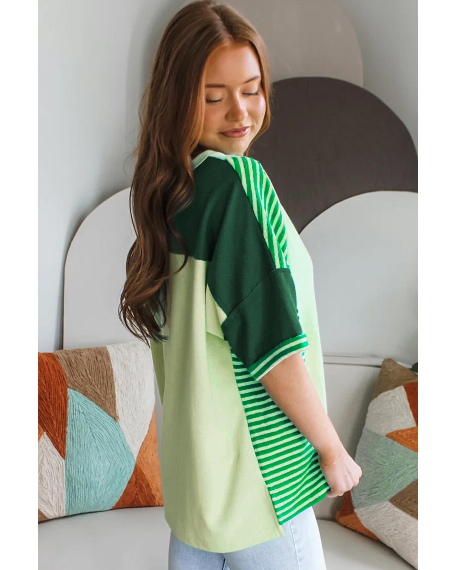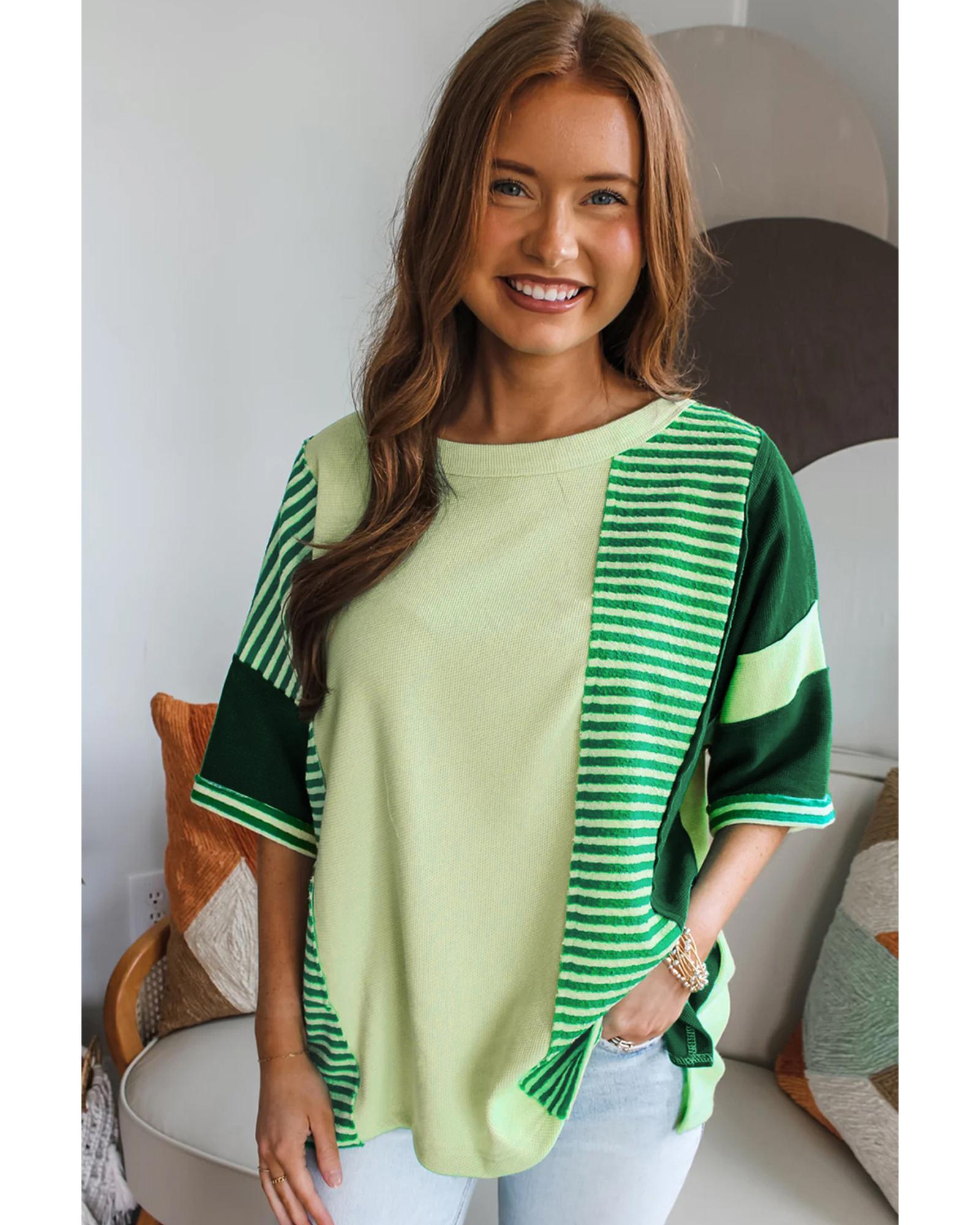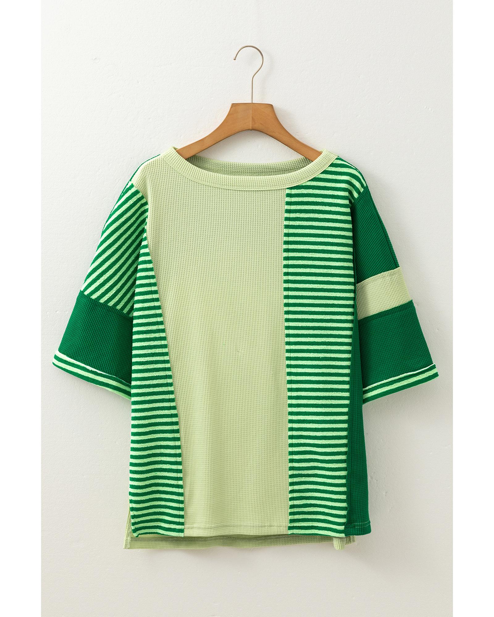 Mint Green Striped Patchwork Textured Colorblock 3/4 Sleeve Knit Top – M
