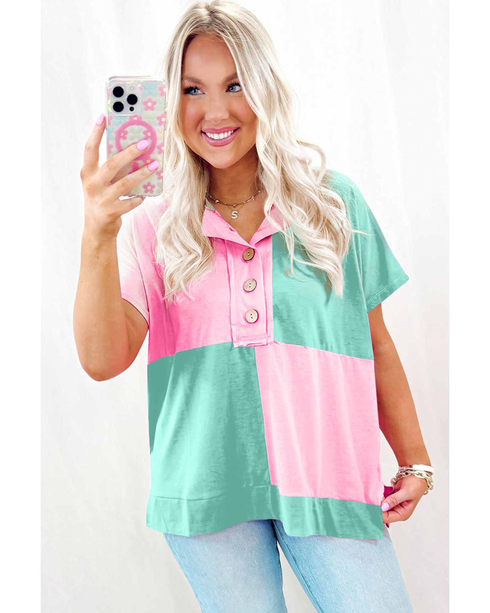 Mint Green Two Tone Half Buttons Collared T Shirt – S