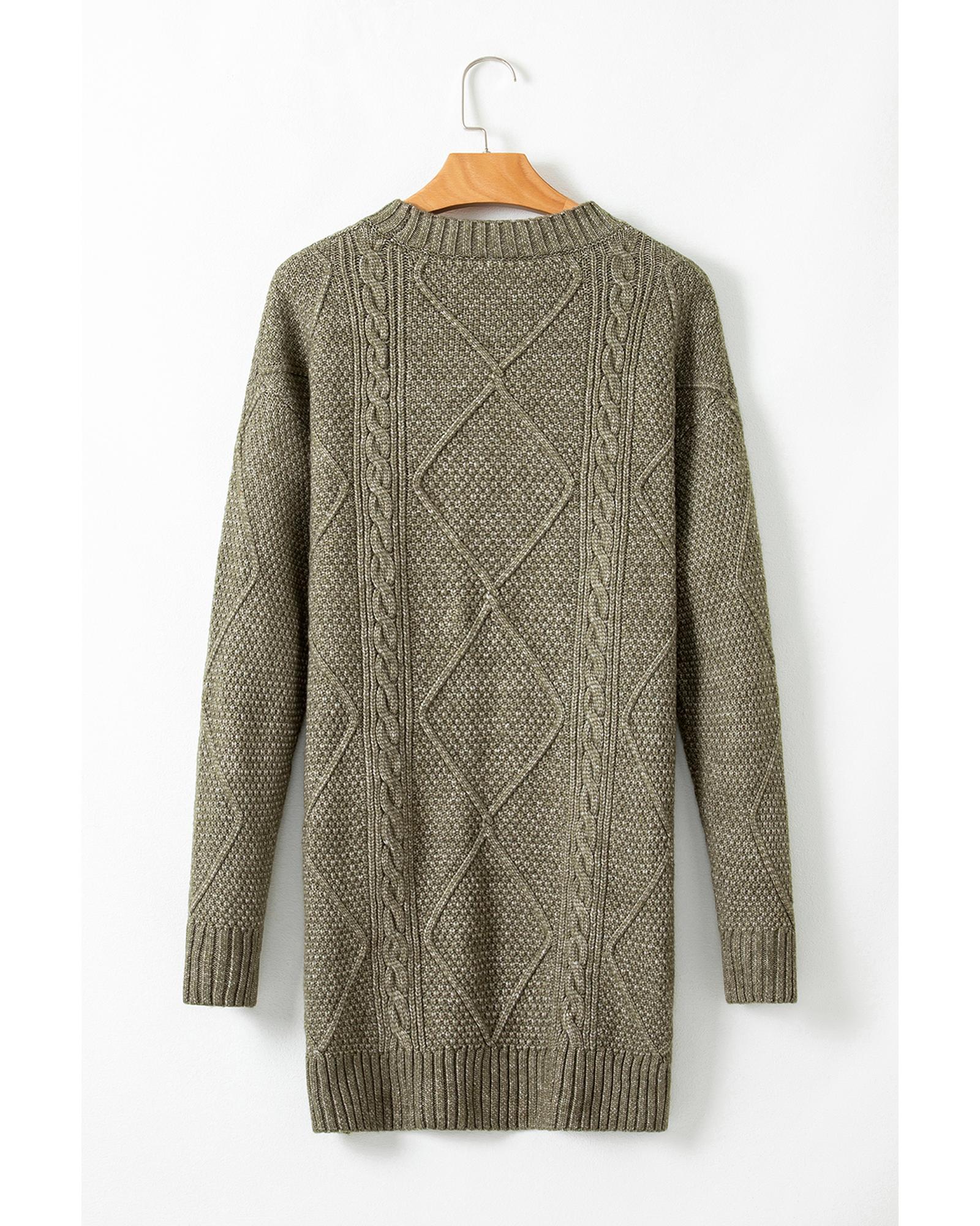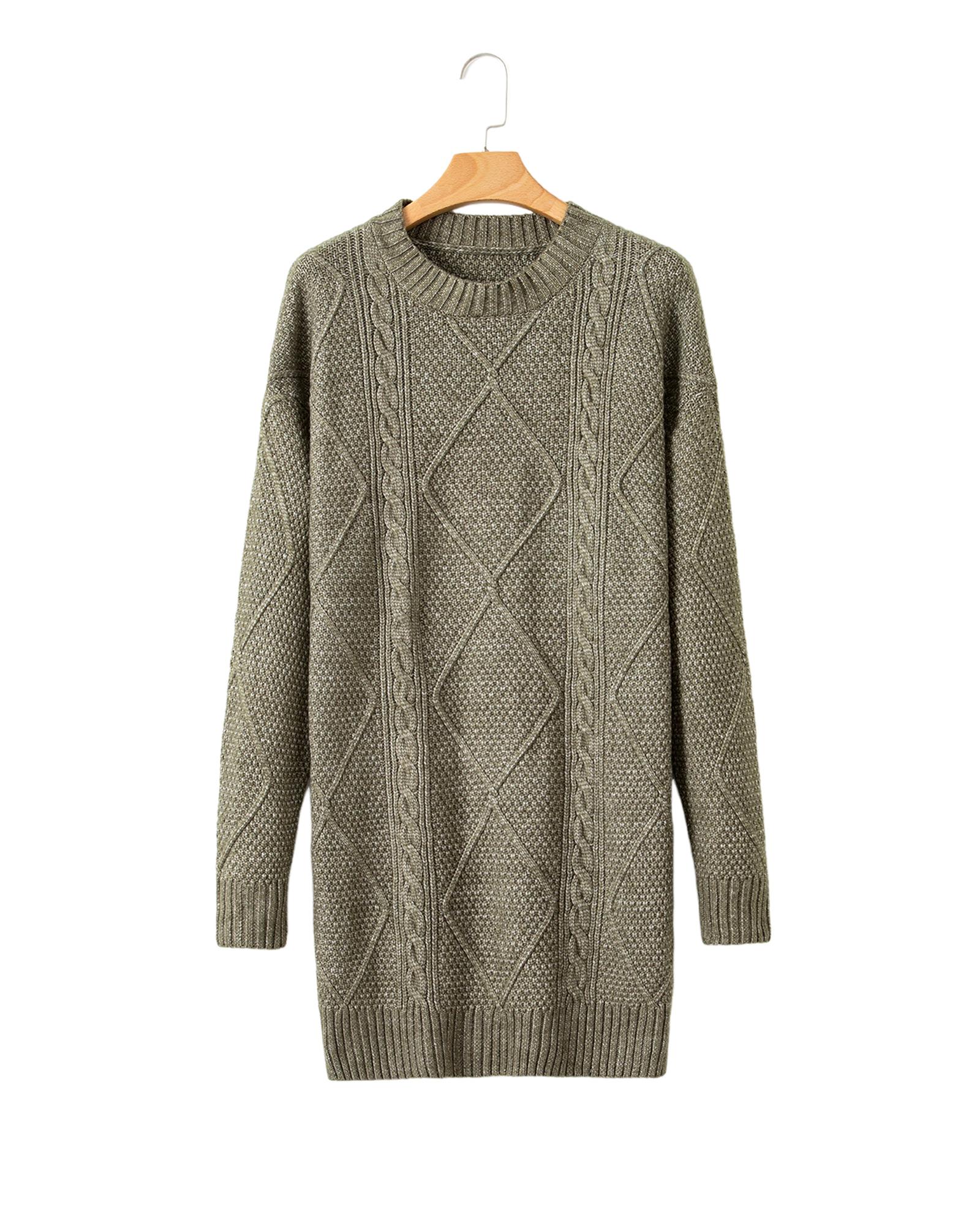 Mist Green Cable Knit Drop Shoulder Loose Fit Sweater Dress – S