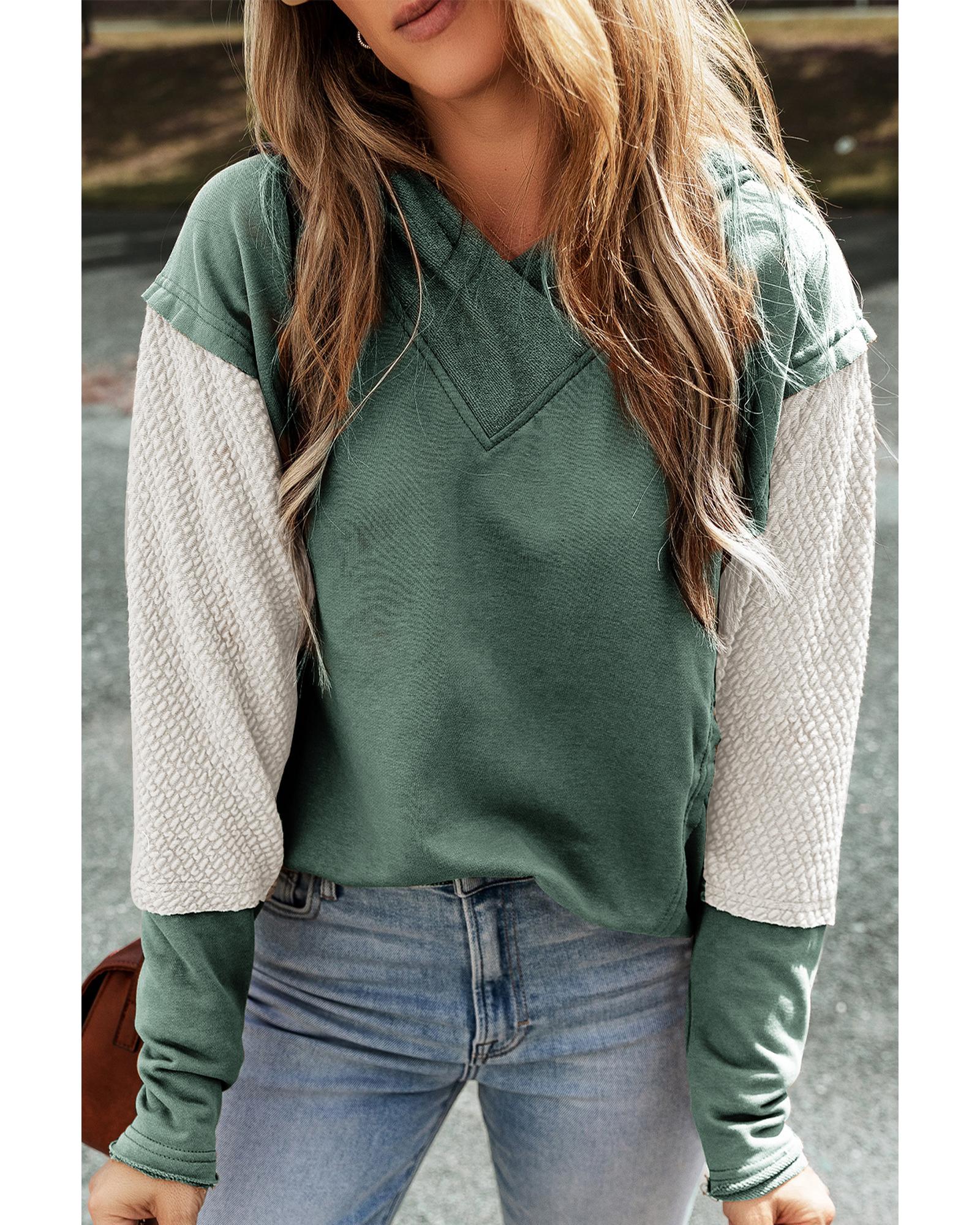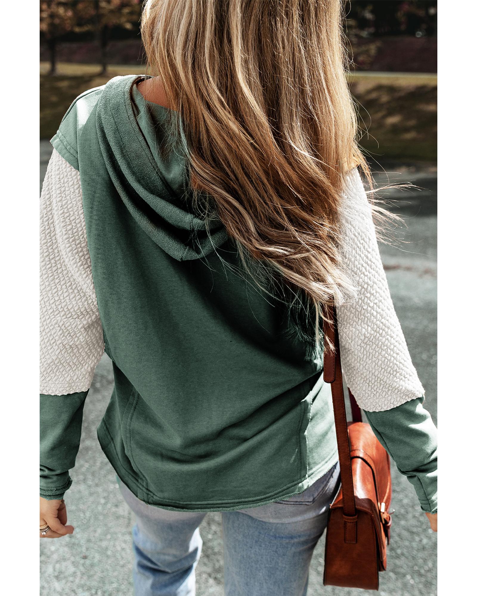 Mist Green Contrast Sleeves Patchwork Colorblock Hoodie – L
