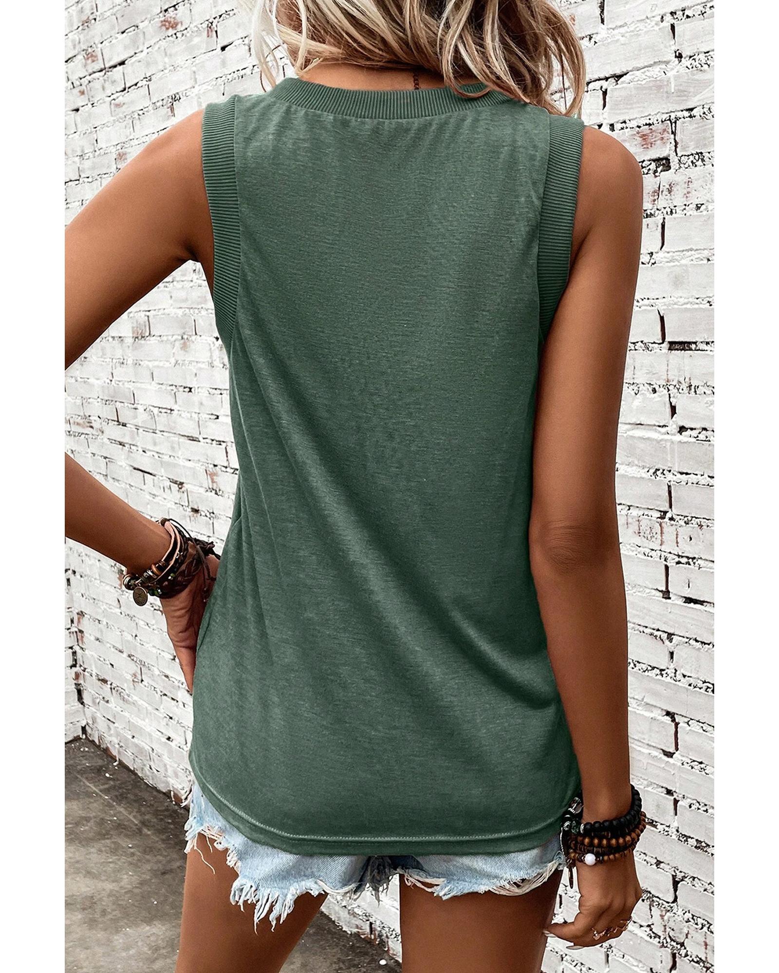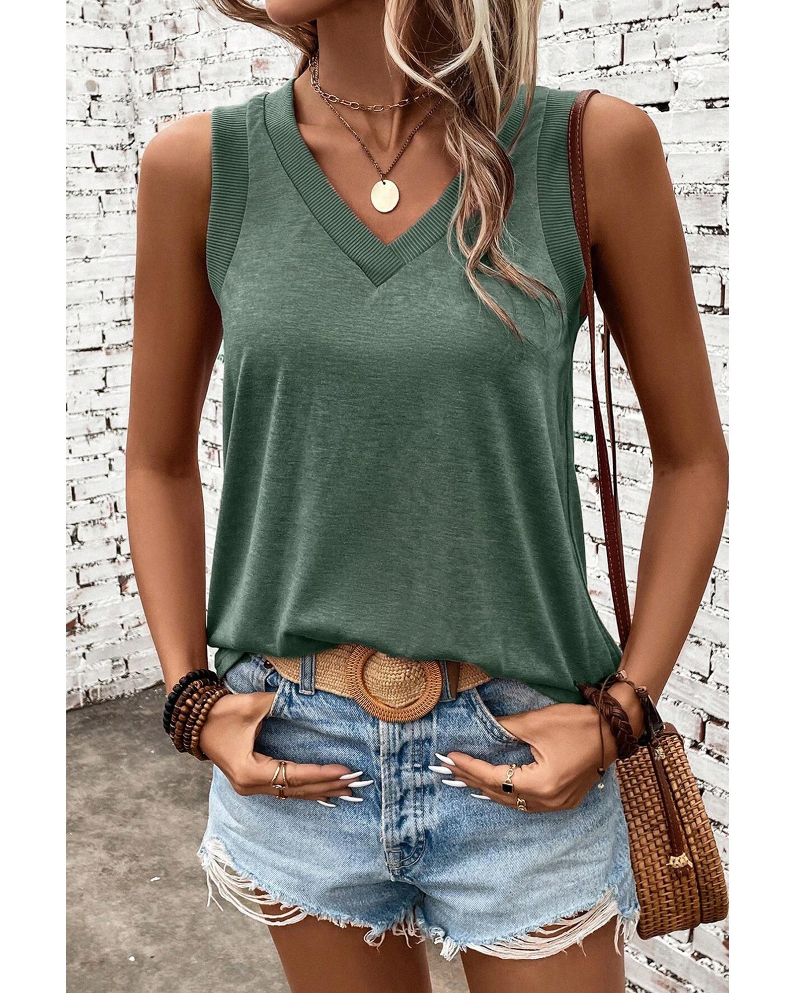 - Mist Green Ribbed V Neck Tank