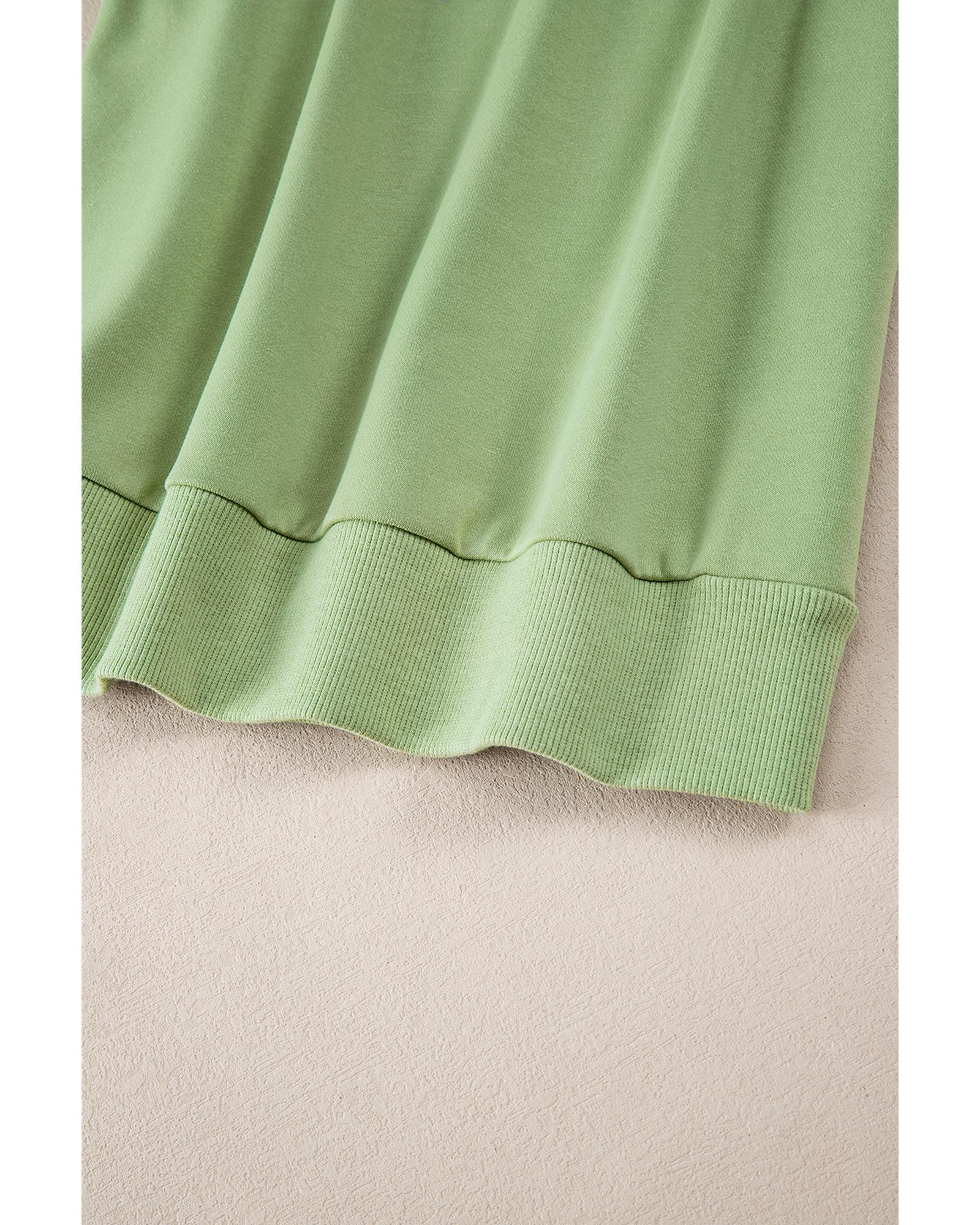 Mist Green Solid Patchwork Sleeve Round Neck Sweatshirt – L