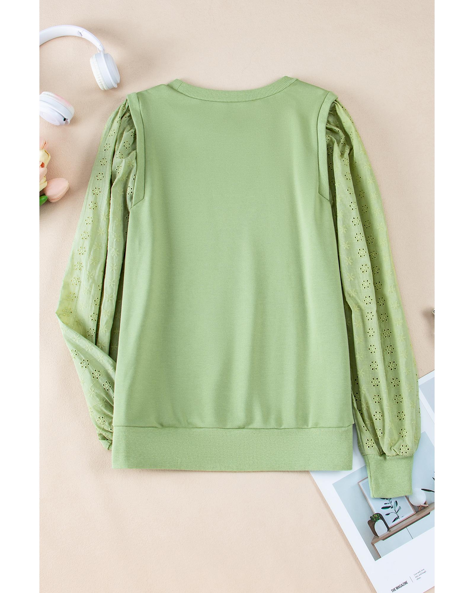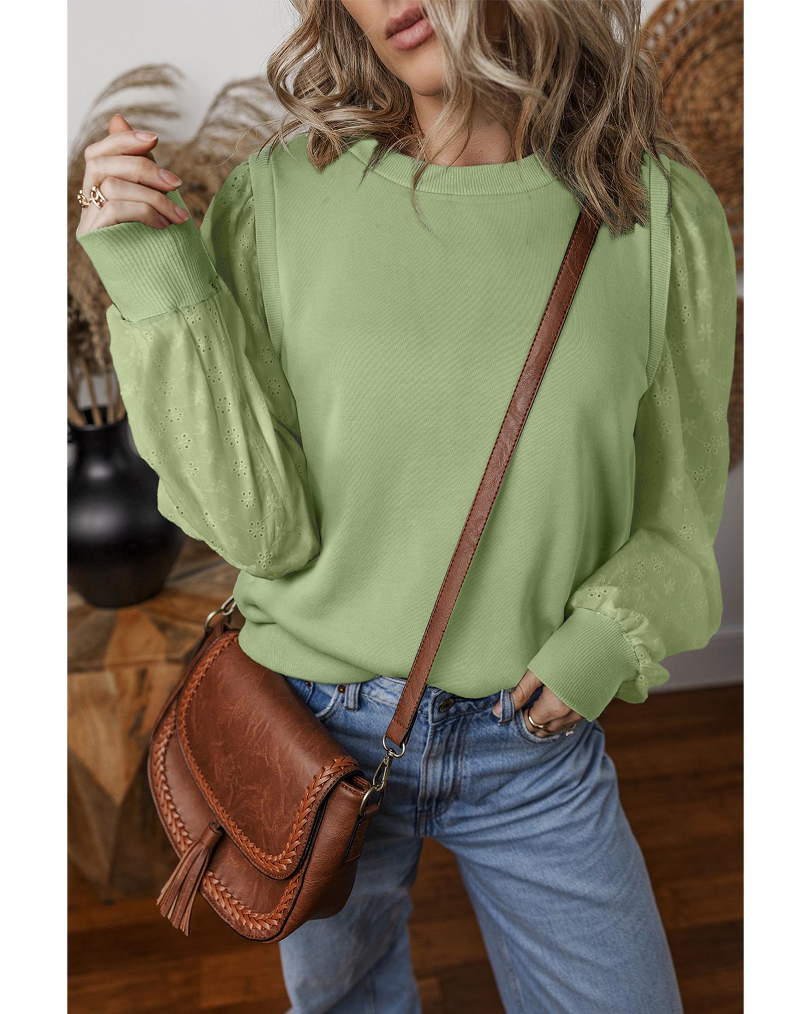 Mist Green Solid Patchwork Sleeve Round Neck Sweatshirt – XL