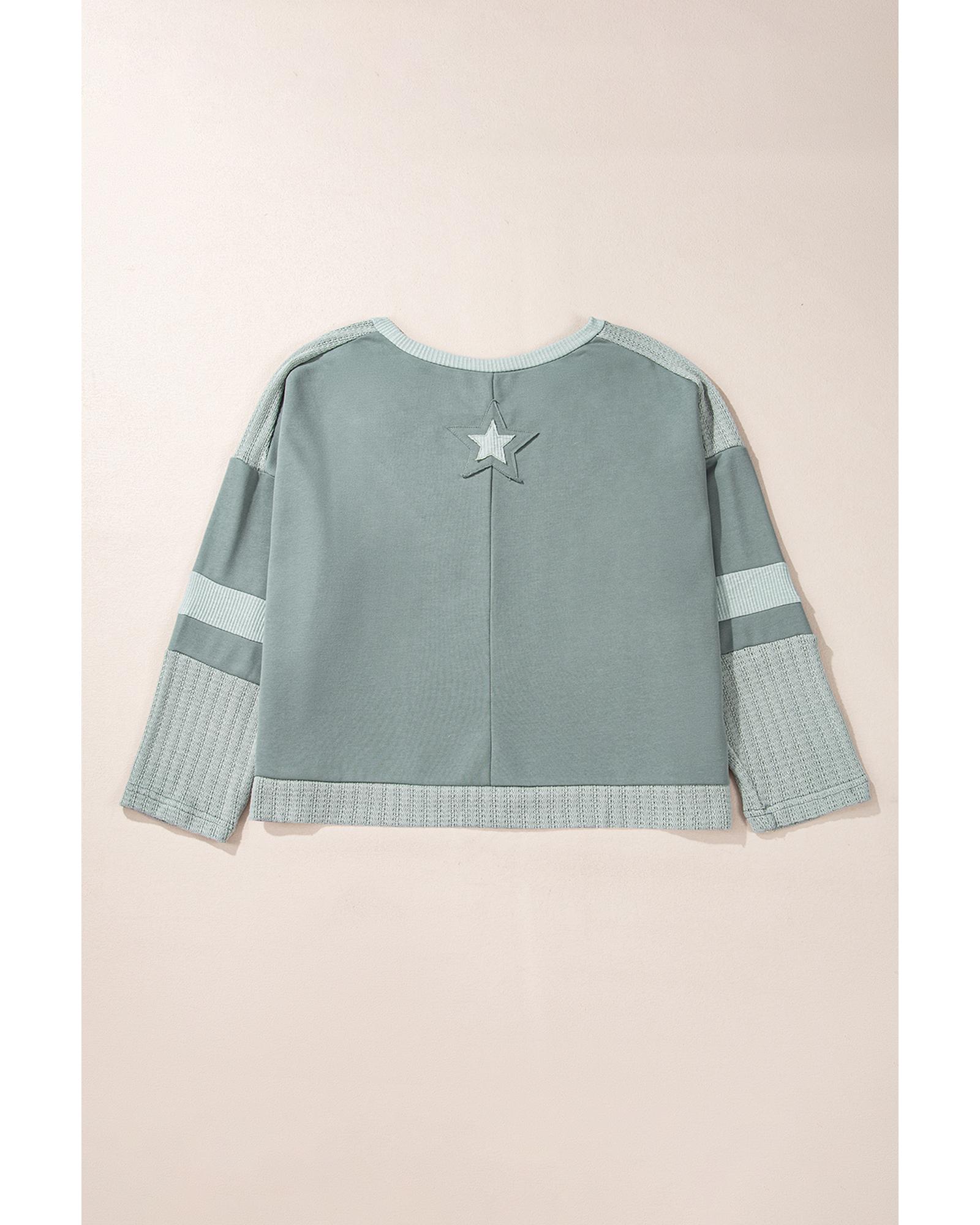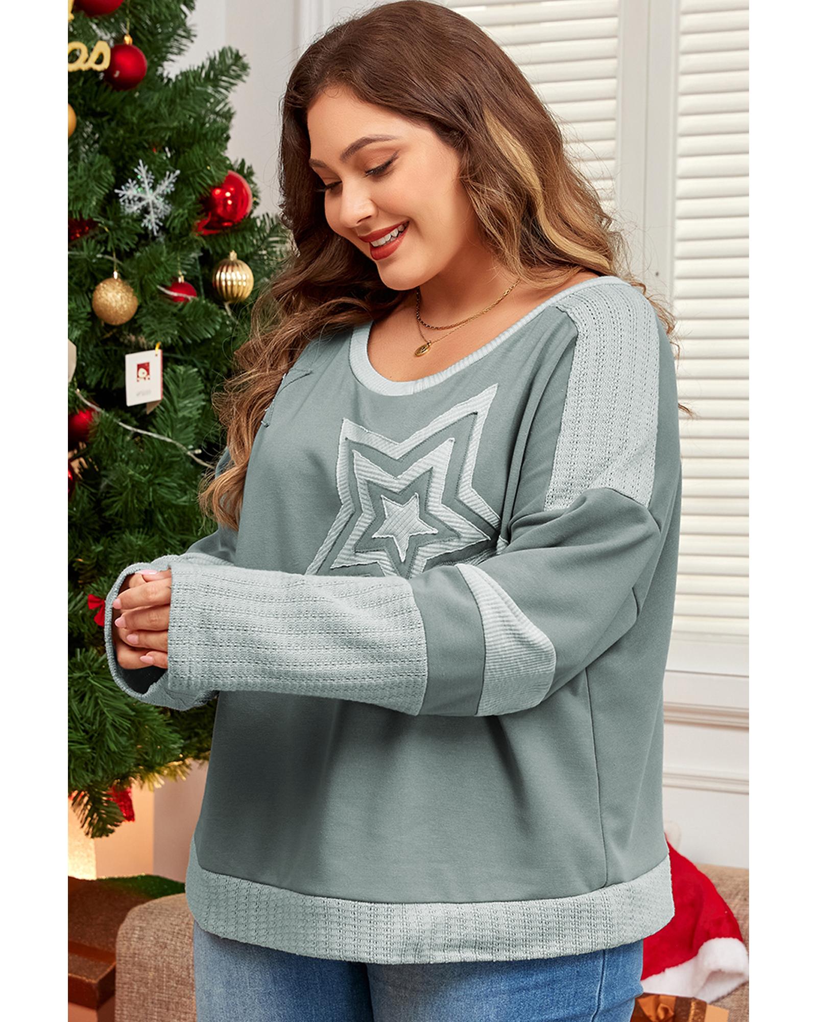 Mist Green Stars Patchwork Round Neck Plus Size T Shirt – 3X