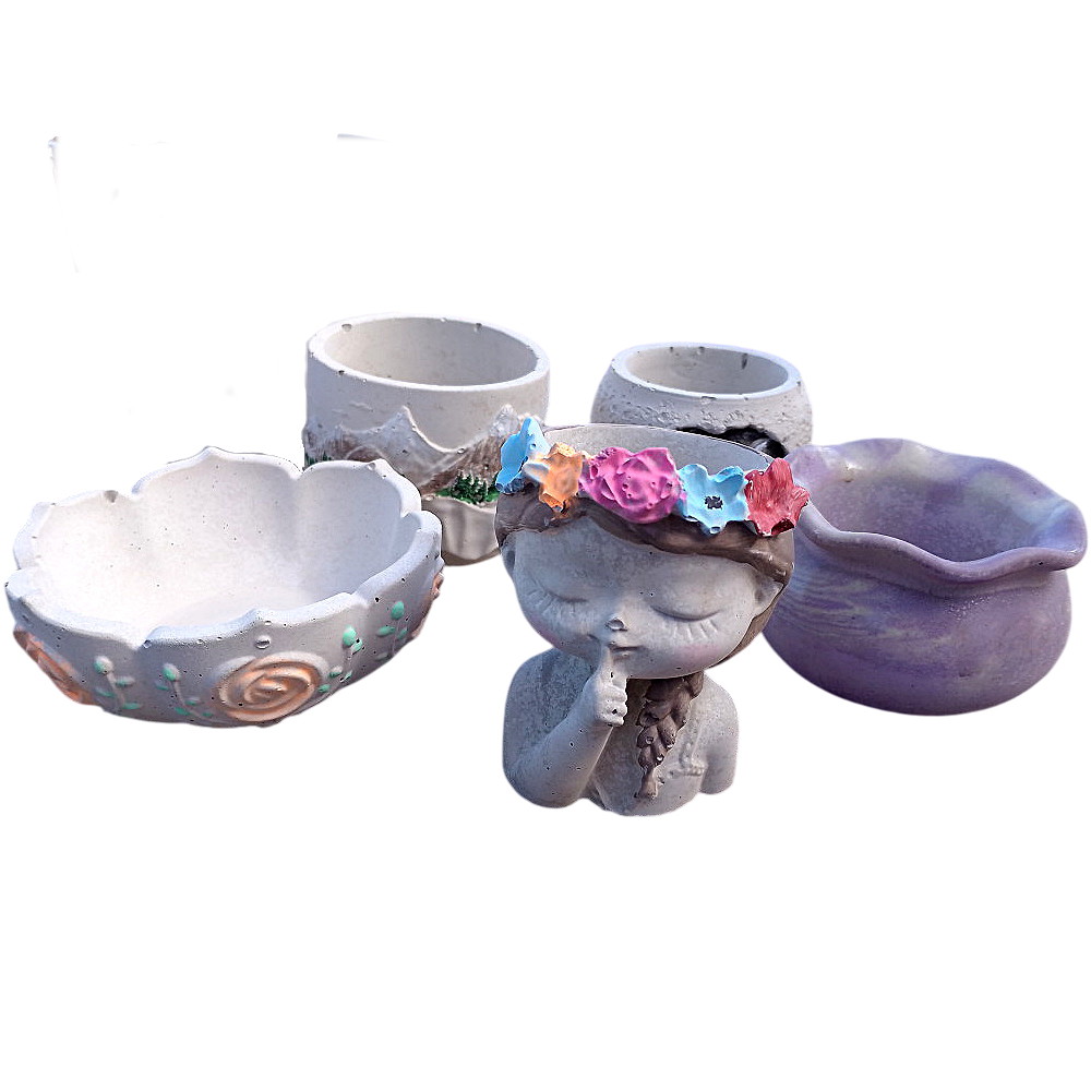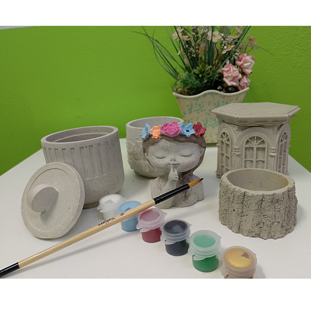 This is a mixed pack of Australian made, hand cast, small, concrete succulent planters. They come in a range of sizes and unique styles that will please any succulent lover. The package comes with some paints and two paint brushes in case you want to paint them and truly make them unique.