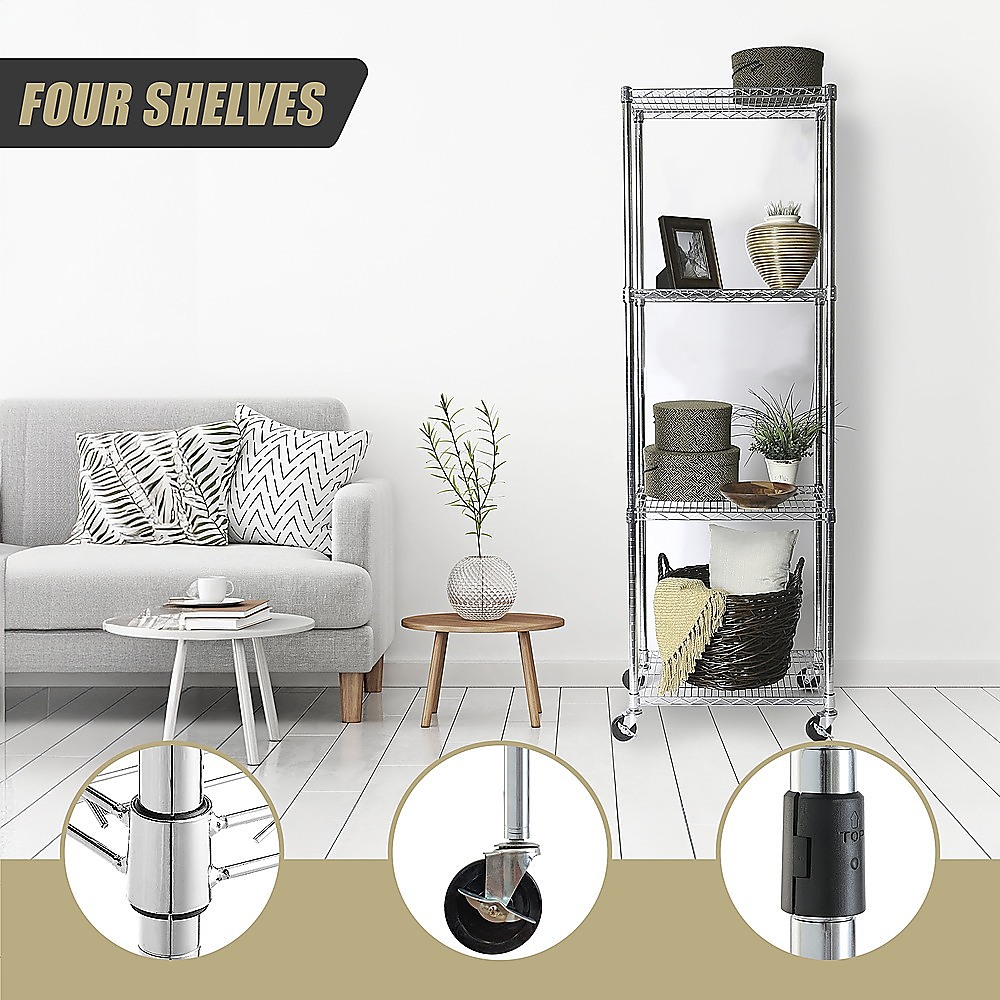 Say goodbye to your organization worries at home and work with the robust and long-lasting four-shelf storage unit.