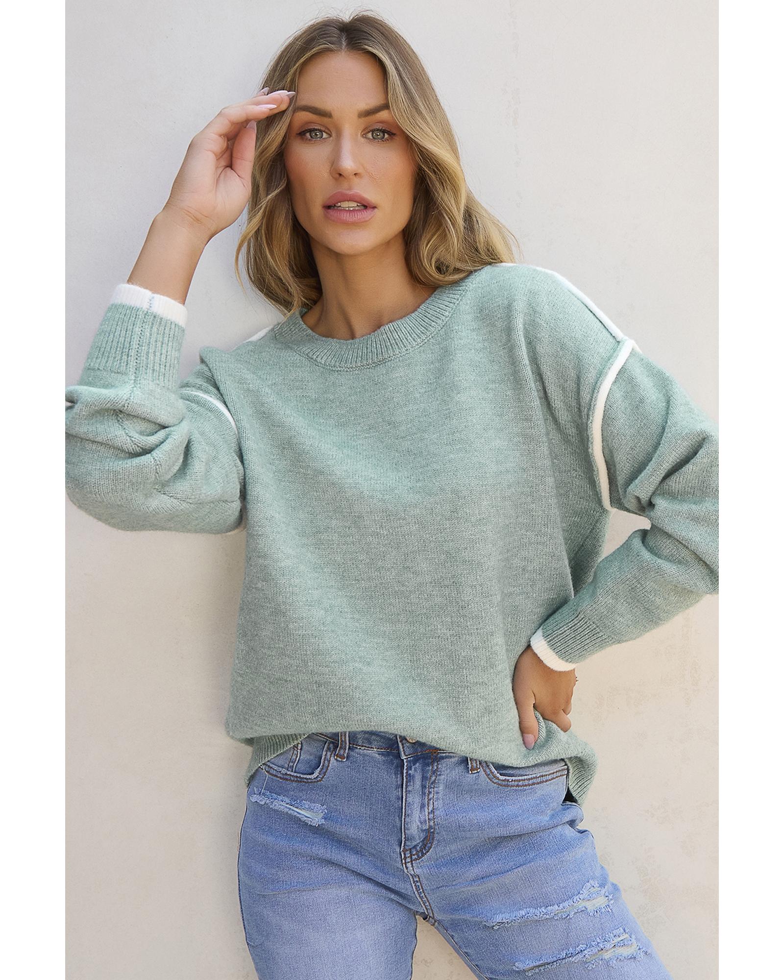 Moonlight Jade Colorblock Contrasting Edge Crewneck Sweater – L