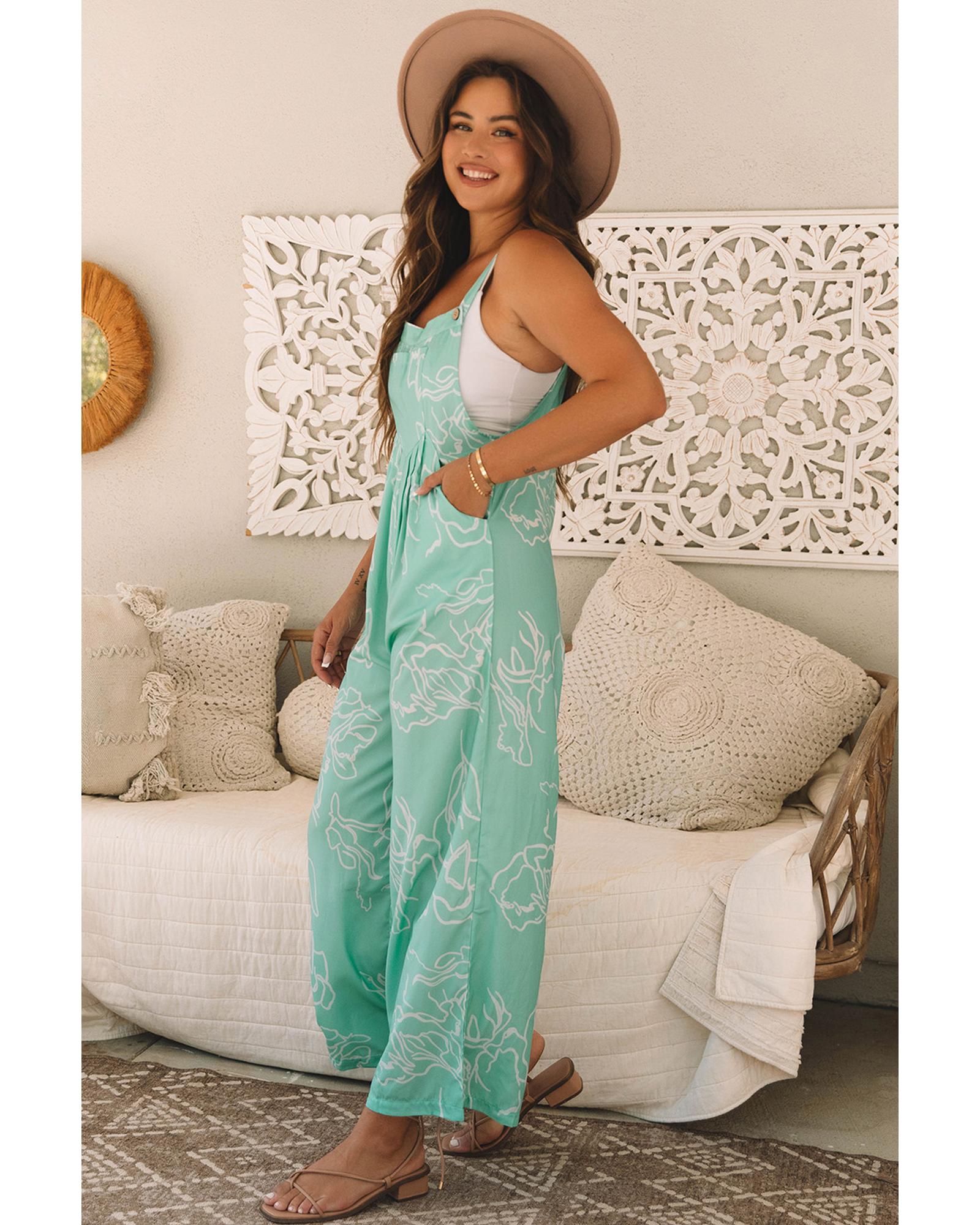 - Moonlight Jade Printed Bib Wide Leg Overalls
