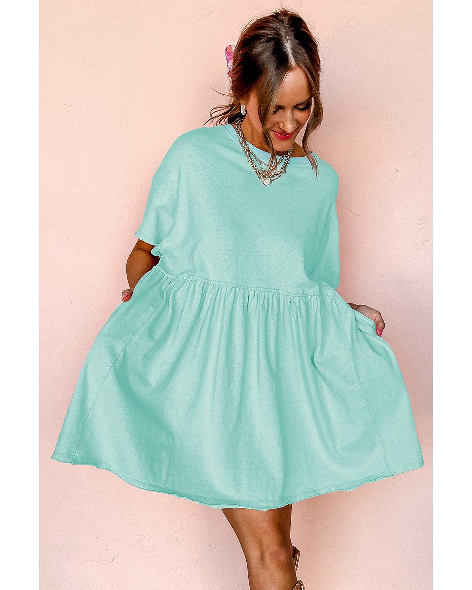 Moonlight Jade Solid Color Pocketed Raw Edge Babydoll Dress – M