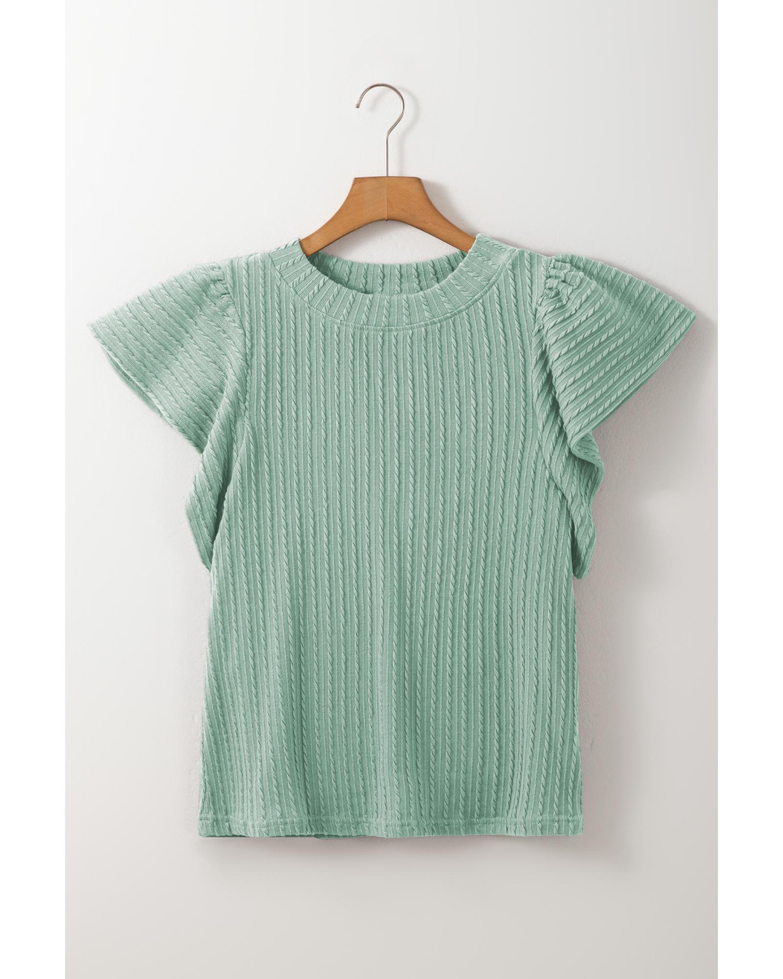 Moonlight Jade Solid Color Textured Flutter Sleeve Top – S