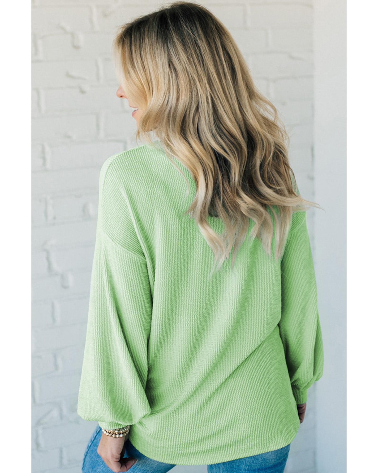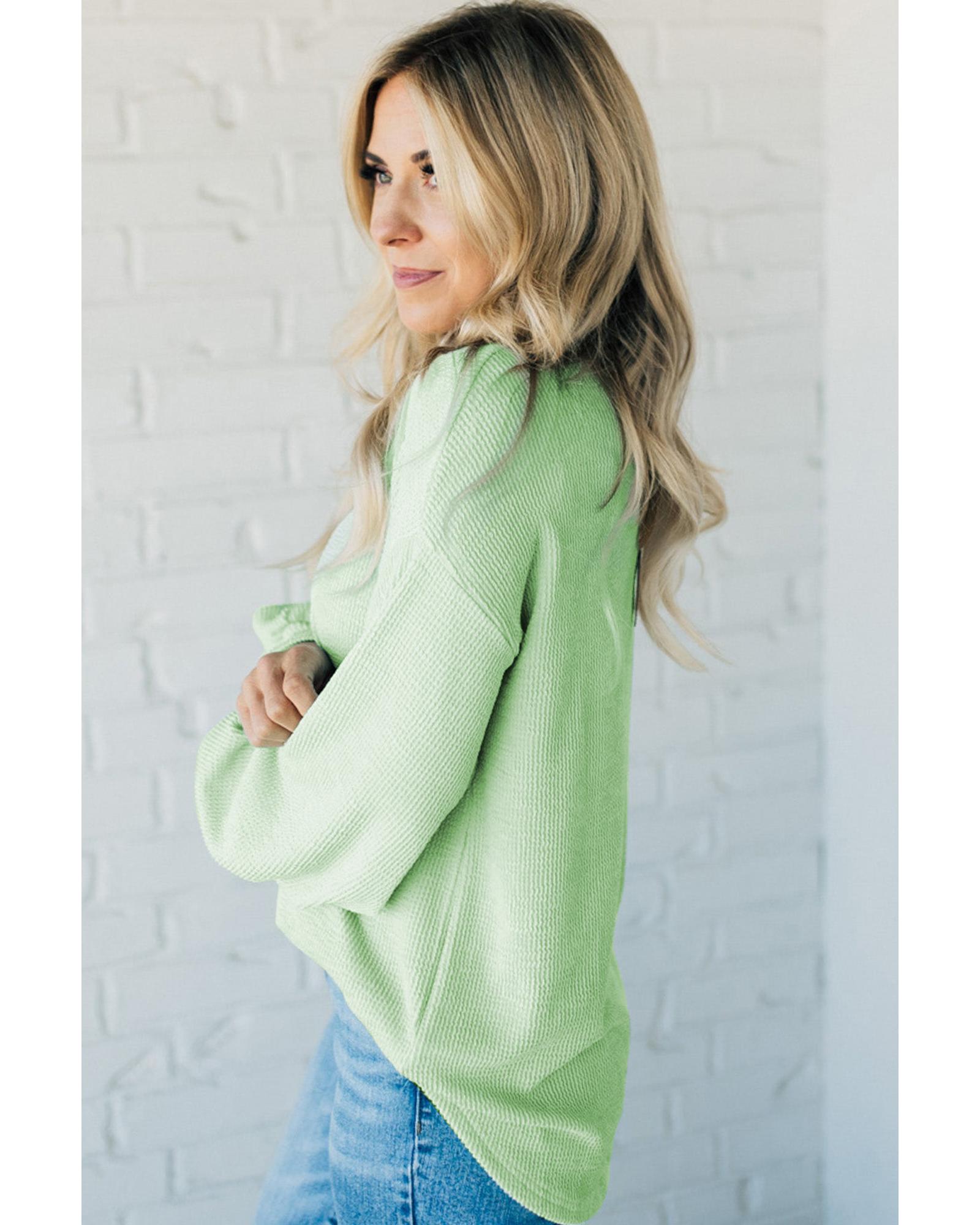 Moonlight Jade Solid Cord Ribbed Drop Shoulder Pullover Top – L