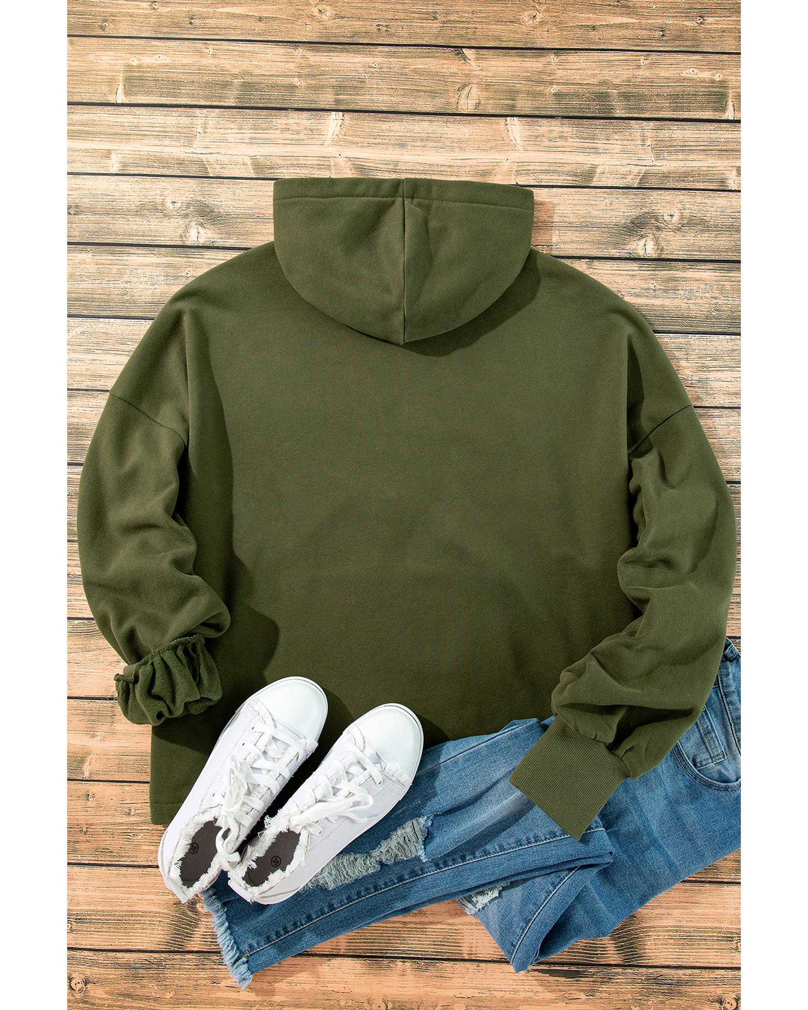 - Moss Green Fleece Lined Half Zipper Kangaroo Pockets Loose Hoodie
