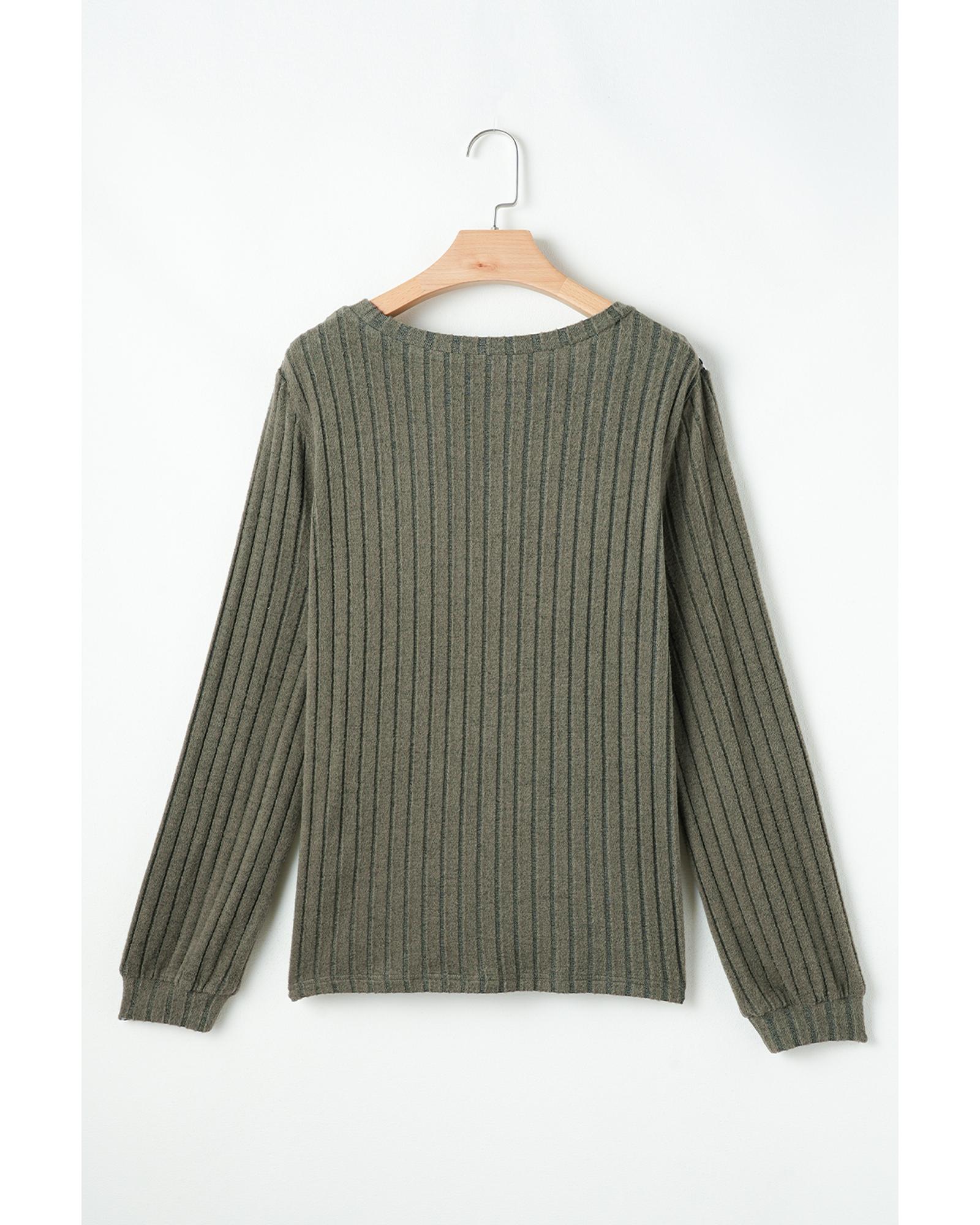 Moss Green Leopard Print Crochet Patchwork Rib Textured Knit Top – XL